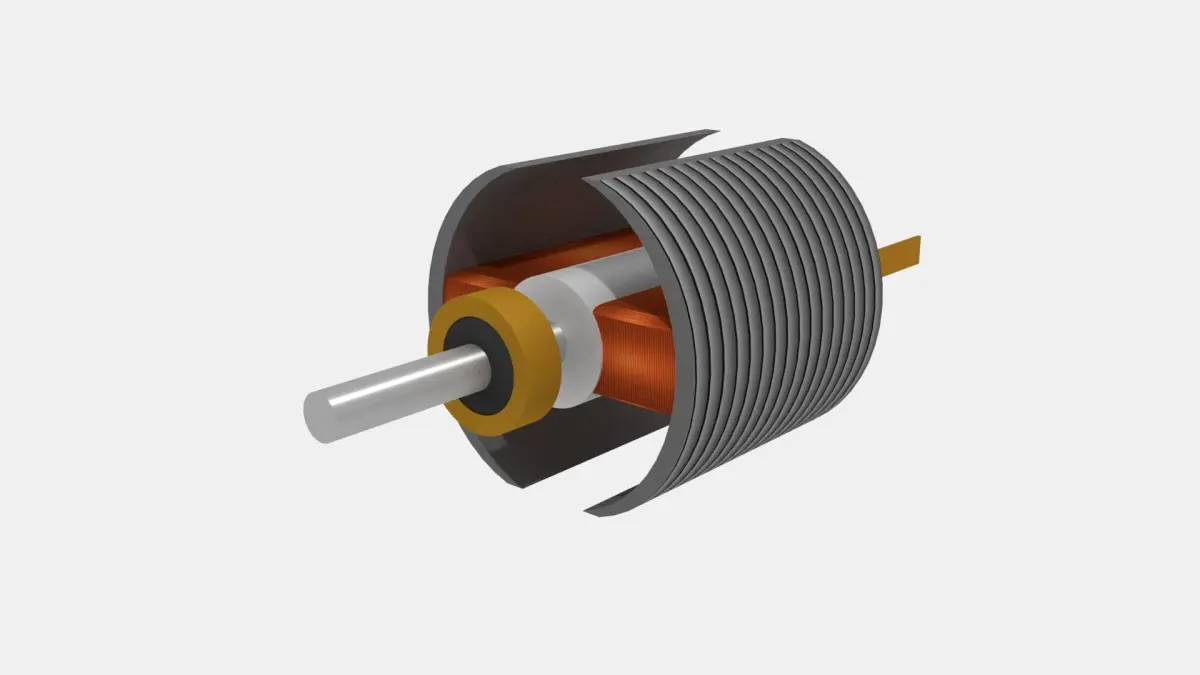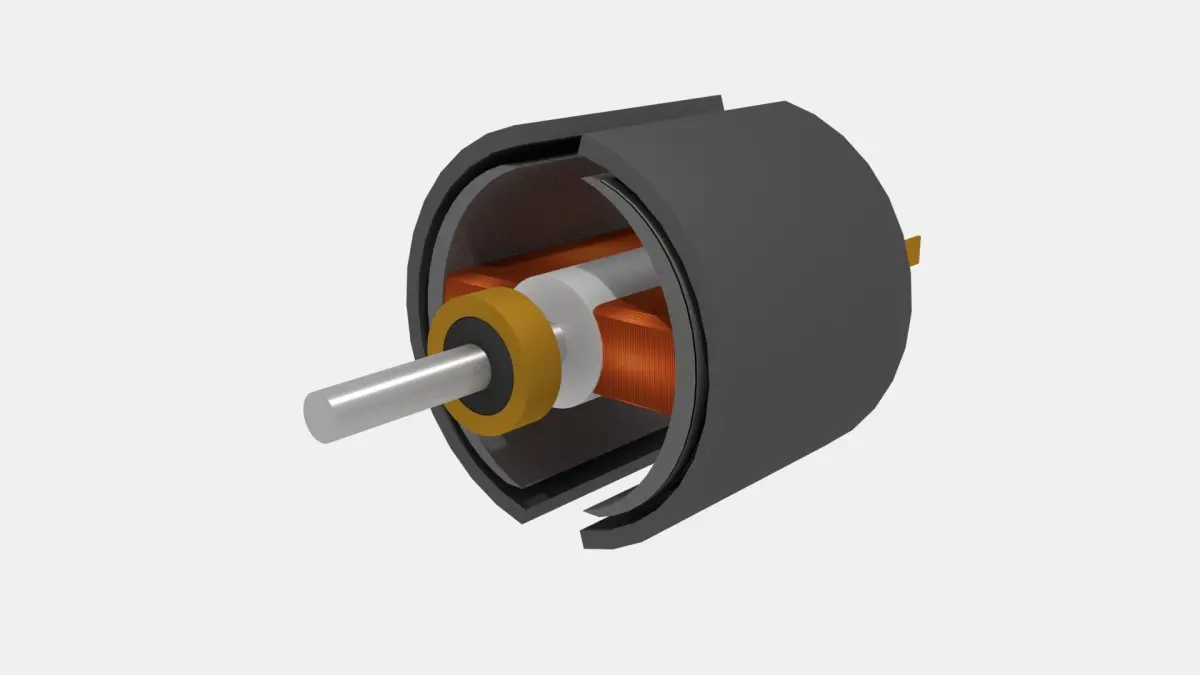 This is a very simple generic DC electric motor with two electromagnetic coils. It has internal and external parts, so this model can be used to show the parts and operation of a DC electric motor.