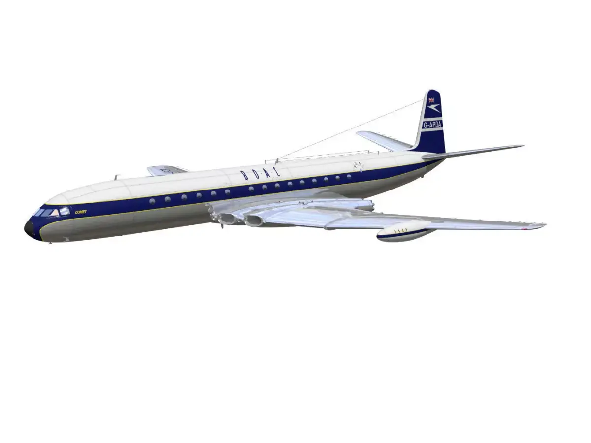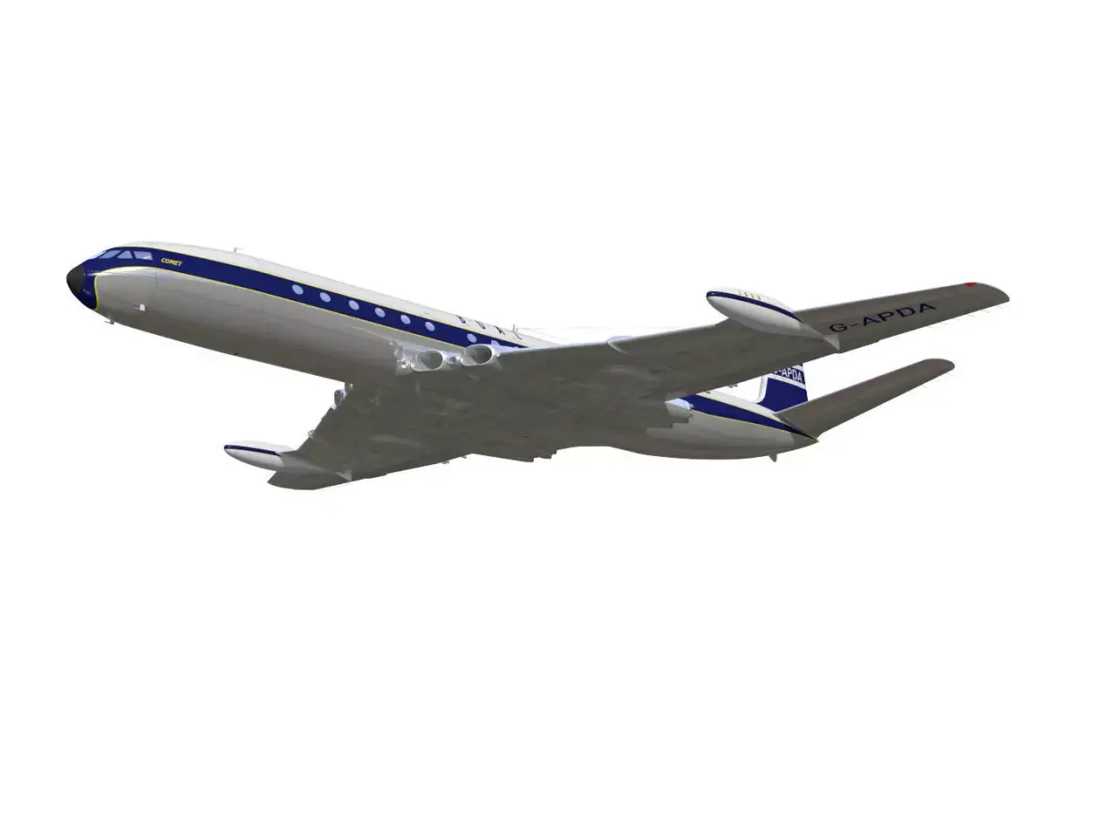 The de Havilland DH.106 Comet is a jet airliner that first flew in 1949.The model is the Mk.4.The interior of the fuselage is not modeled.Due to export processes, the texture of the original data may sometimes change.The model's landing gear is separated into parts for the flight position and landing position.Moving parts are separated. However, please note that rigging is not implemented.This model is not intended for use in low-poly environments such as games.This model is not intended for 3D printing.Please be aware of this when purchasing.