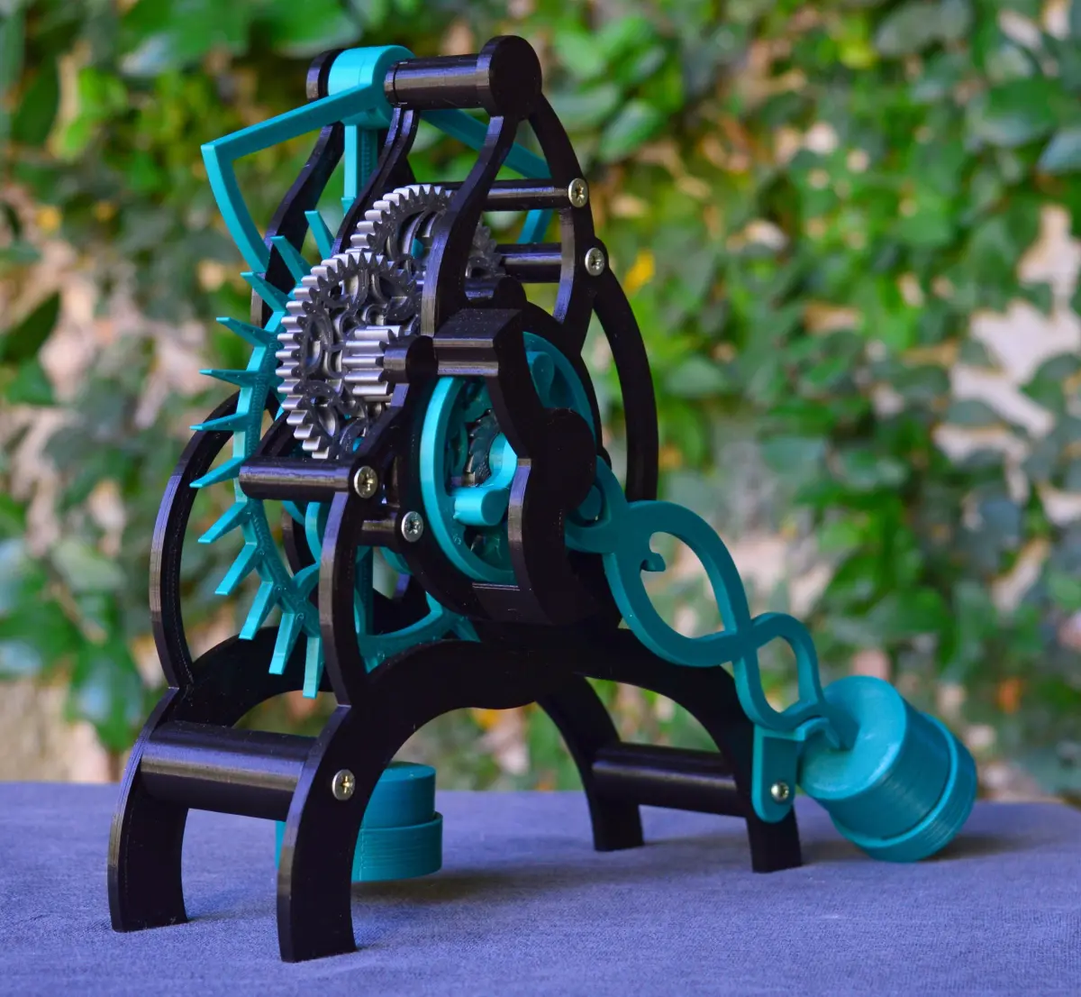 This is the second version of the fully-functional mechanical countdown timer meant for board games.Now with an extra gear stage to count up to 4 minutes!It's fully 3D printed, except for the axles, which can be salvaged from an old inkjet printer, a handful of screws and some coins or washers for weight.The machine features a print-in-place ratchet mechanism to load the weight arm in increments of 1 minute. The energy is transferred to the deadbeat escapement wheel via a gear train.It includes a comprehensive 23-page building guide with lots of pictures!
