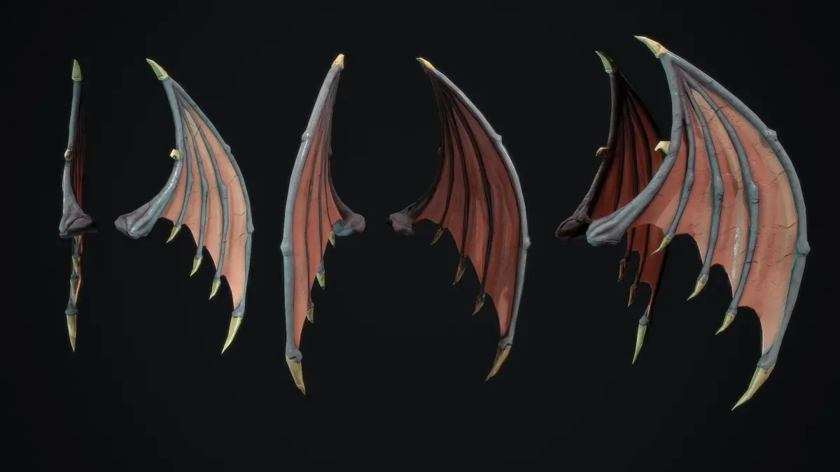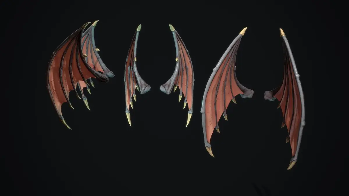 Deamon Wings low poly model for pbr, 2 Variant texture, for low poly mesh, syone and stylized. texture res. 4k(albedo,metallic, roughness,ao,normal) format inlude: *fbx *obj *max inlude Hi poly and Low poly version Low-3124 tris Hi-625000tris