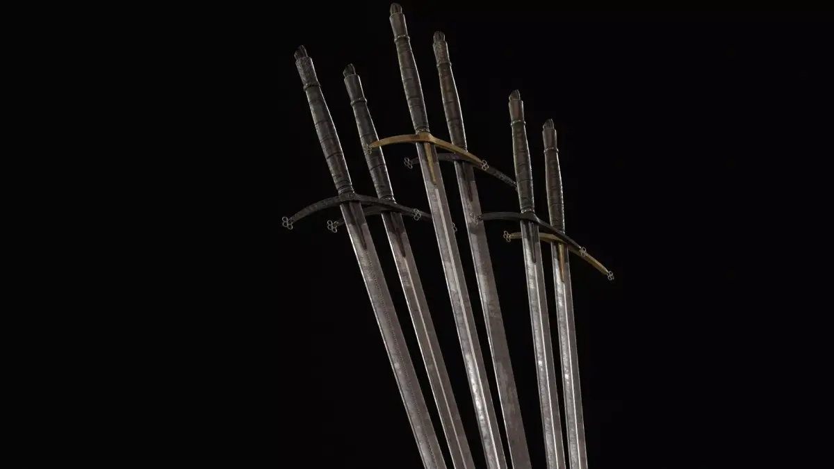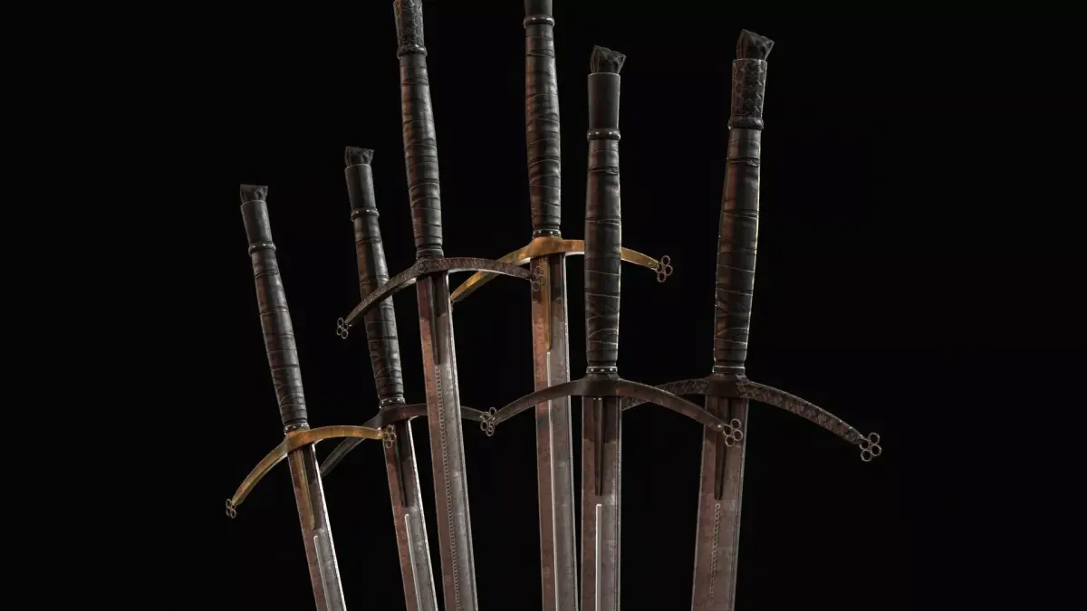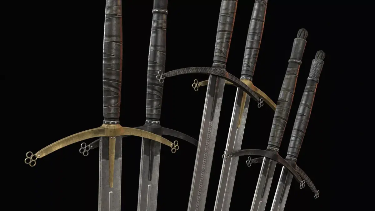 The design features a long blade with a large crossguard, emphasizing its knightly origin while adding a brutal and ominous presence. The model includes PBR textures and is prepared for easy integration into game engines. The grip is positioned at world zero for convenient placement and attachment, and the model is oriented along the Z axis. The asset includes 2K and 4K textures, making it suitable for optimized real-time use as well as more detailed cinematic scenes.