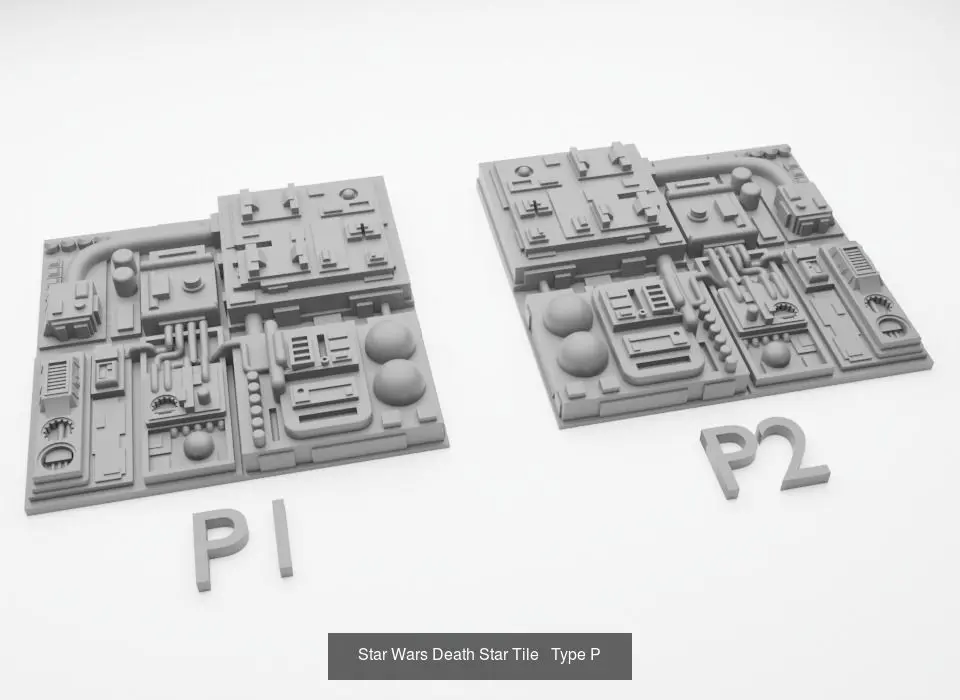 To create a realistic Star Wars Death Star Surface, I created these tiles to create more diversity in the tiles. This tile is marked as KLMNOP. The letter indication is marked at the bottom of the model, so it visible during and after printing.