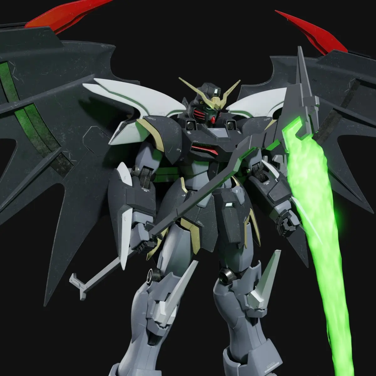 This 3D model is EW Deathscythe Hell Gundam ka ver style custom build with old weathering, the model is 1:1 scale (cm). The body and armor also have joints and constraints.
