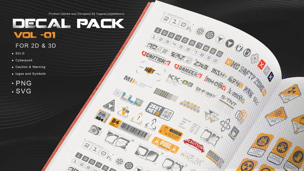 this collection include :more than 150 decal (caution and alerts , sci-fi, Cyberpunk , symbol and logos )