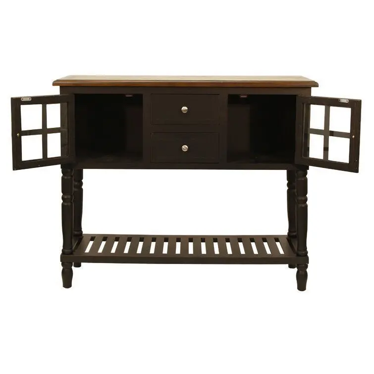 - Stylist's Tip: Equally for stowing fine china and tying together your dining room decor, cabinets and sideboards are the perfect multi-purpose piece. Try topping one with an array of potted plants for a garden-inspired vignette, or display sweets and treats for an elegant dessert spread at your next dinner party. Take this console, for example, its manufactured wood frame featuring traditional turned legs and a solid finish, while a slatted shelf, two glass-front cabinets, and two drawers add storage.