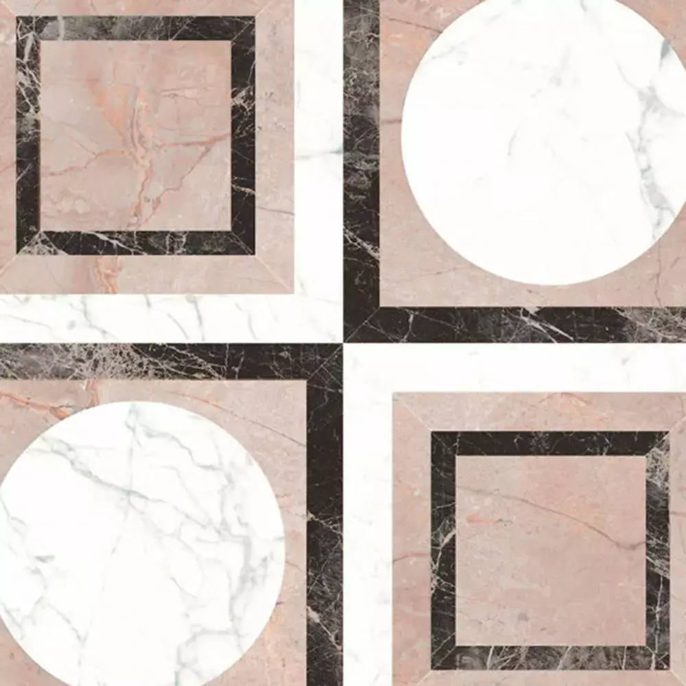 Look: White circles and blush squares with black marble frames