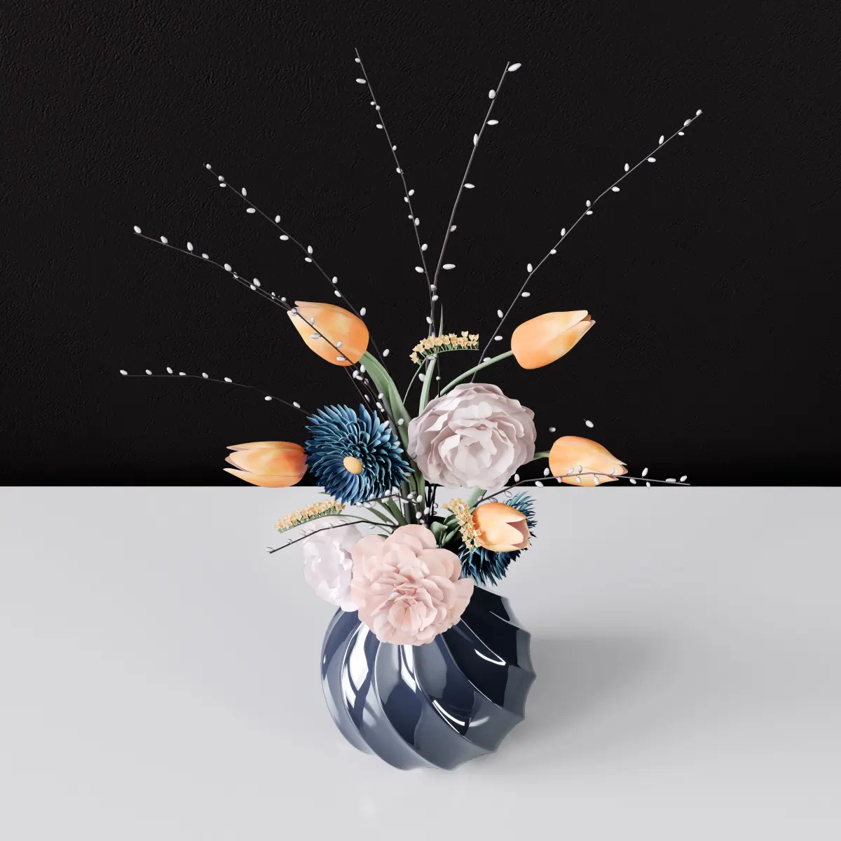 A photorealistic model of a delicate decorative bouquet of flowers in a vase Maria.