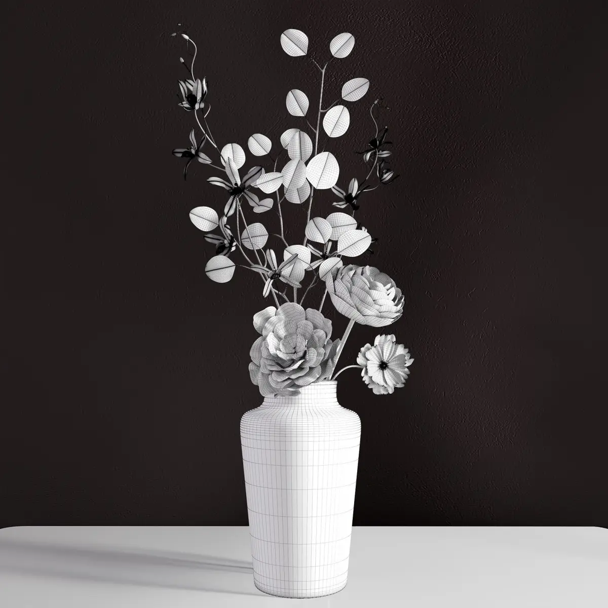 A photorealistic model of a delicate decorative bouquet of flowers in a vase Alicia.