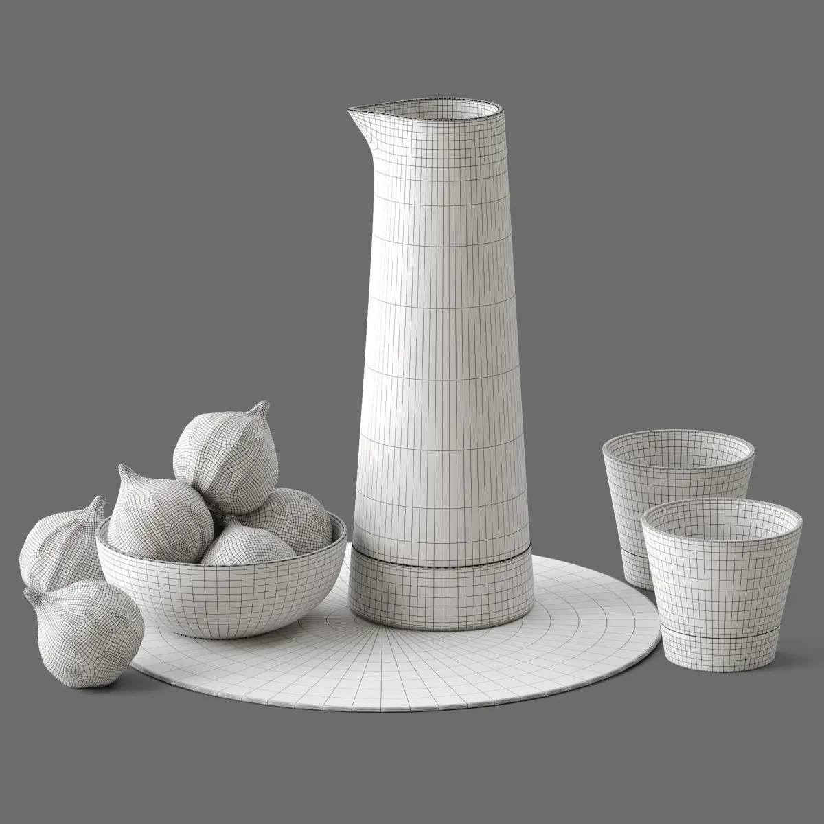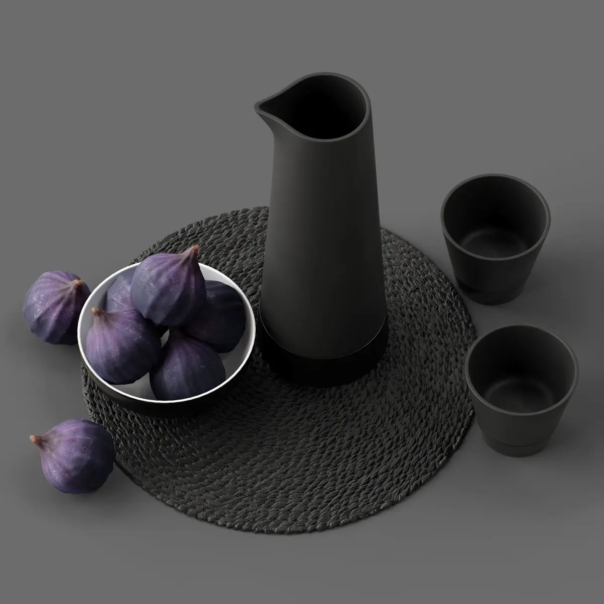 *This 3d model Decor Set 26 Figs on a plate, vase, glasses has fully textured, detailed design that allows for close-up realistic renders. *