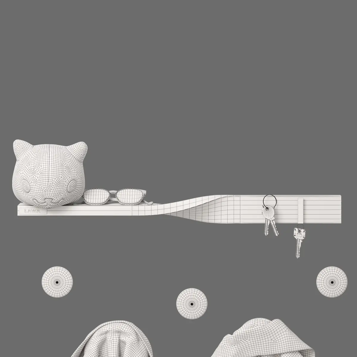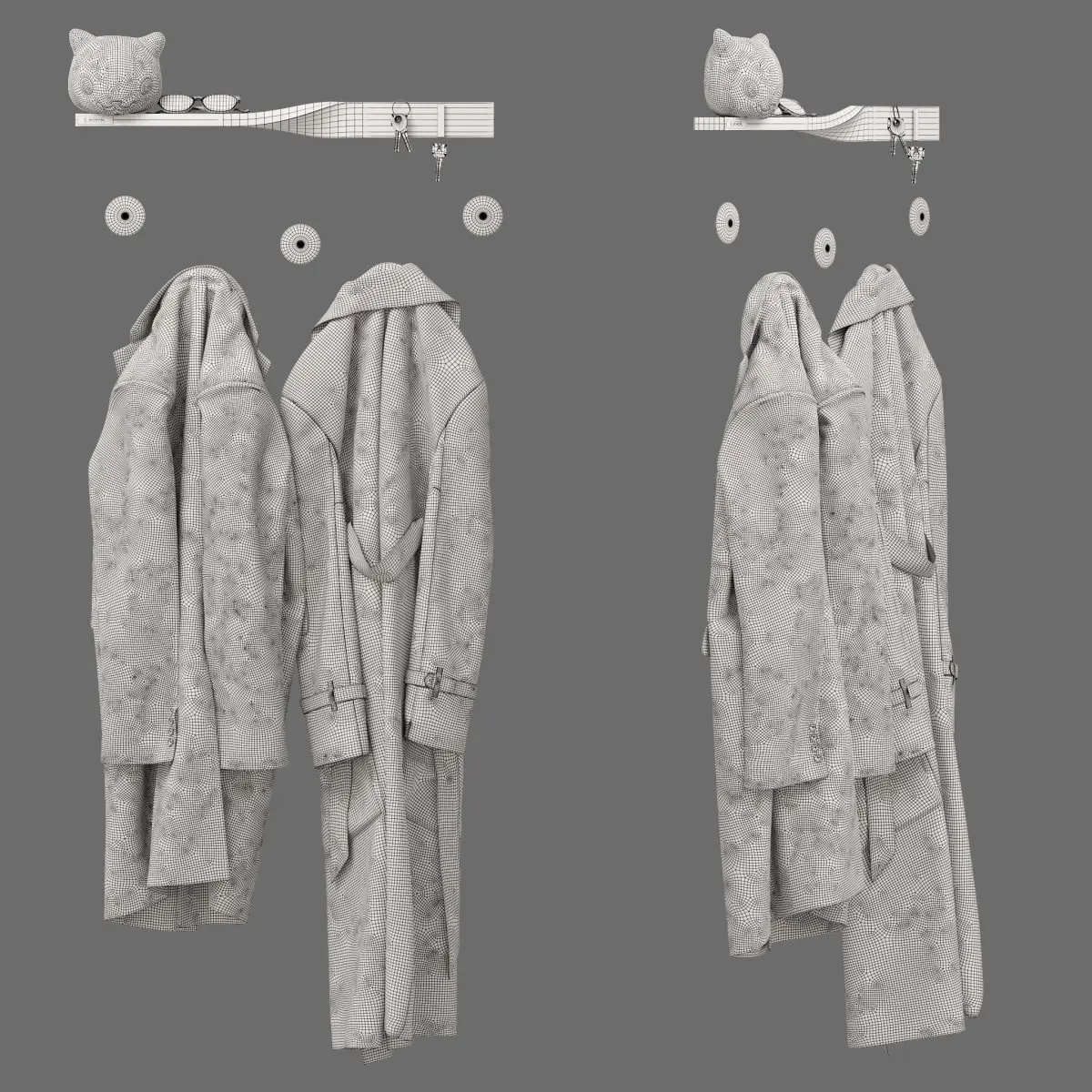 This 3d model Decor Set 91 Vestibule with coat rack, coat and polo, shelf with accessories has fully textured, detailed design that allows for close-up realistic renders.