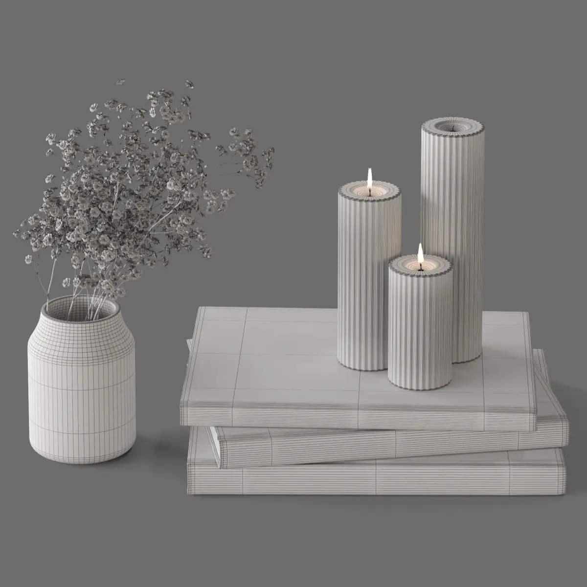 This 3d model Decor Set 44 Gypsophila candles and books are fully textured, detailed design that allows for close-up realistic renders.