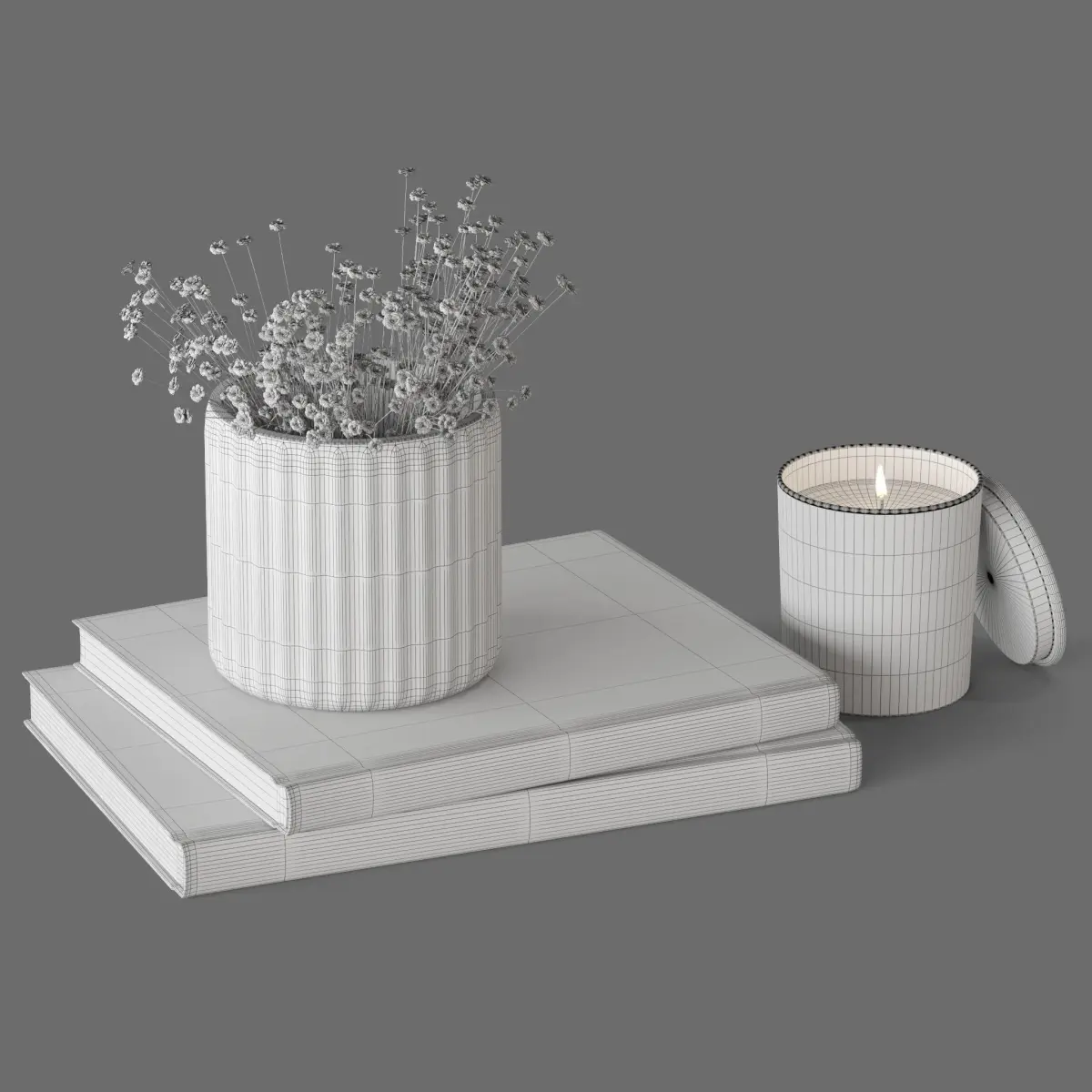*This 3d model Decor Set 25 Gypsophila in a vase, books and a candle has fully textured, detailed design that allows for close-up realistic renders. *