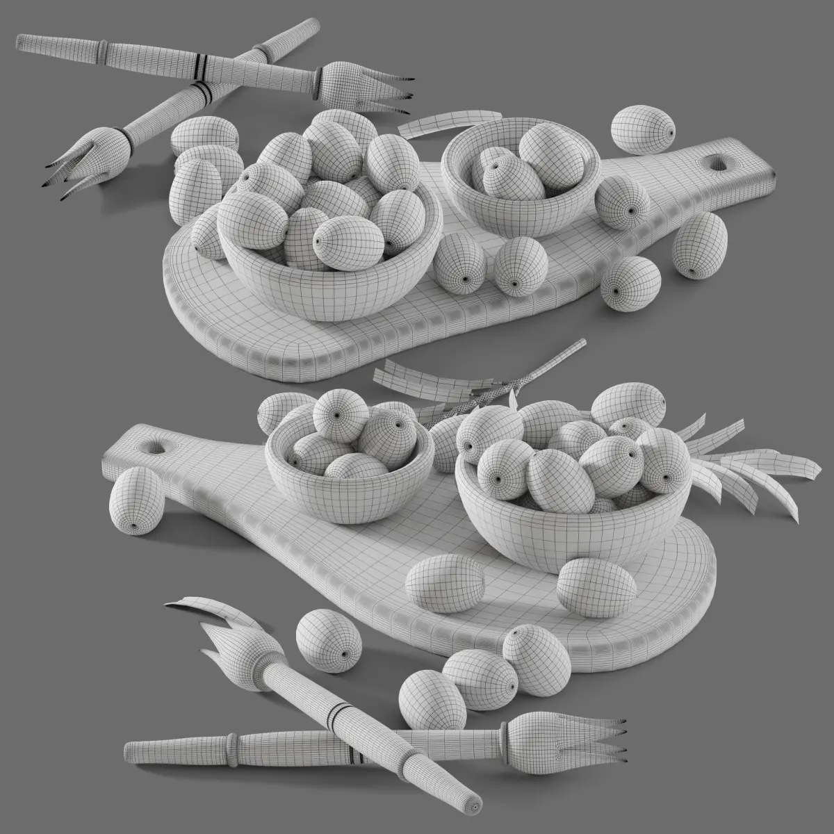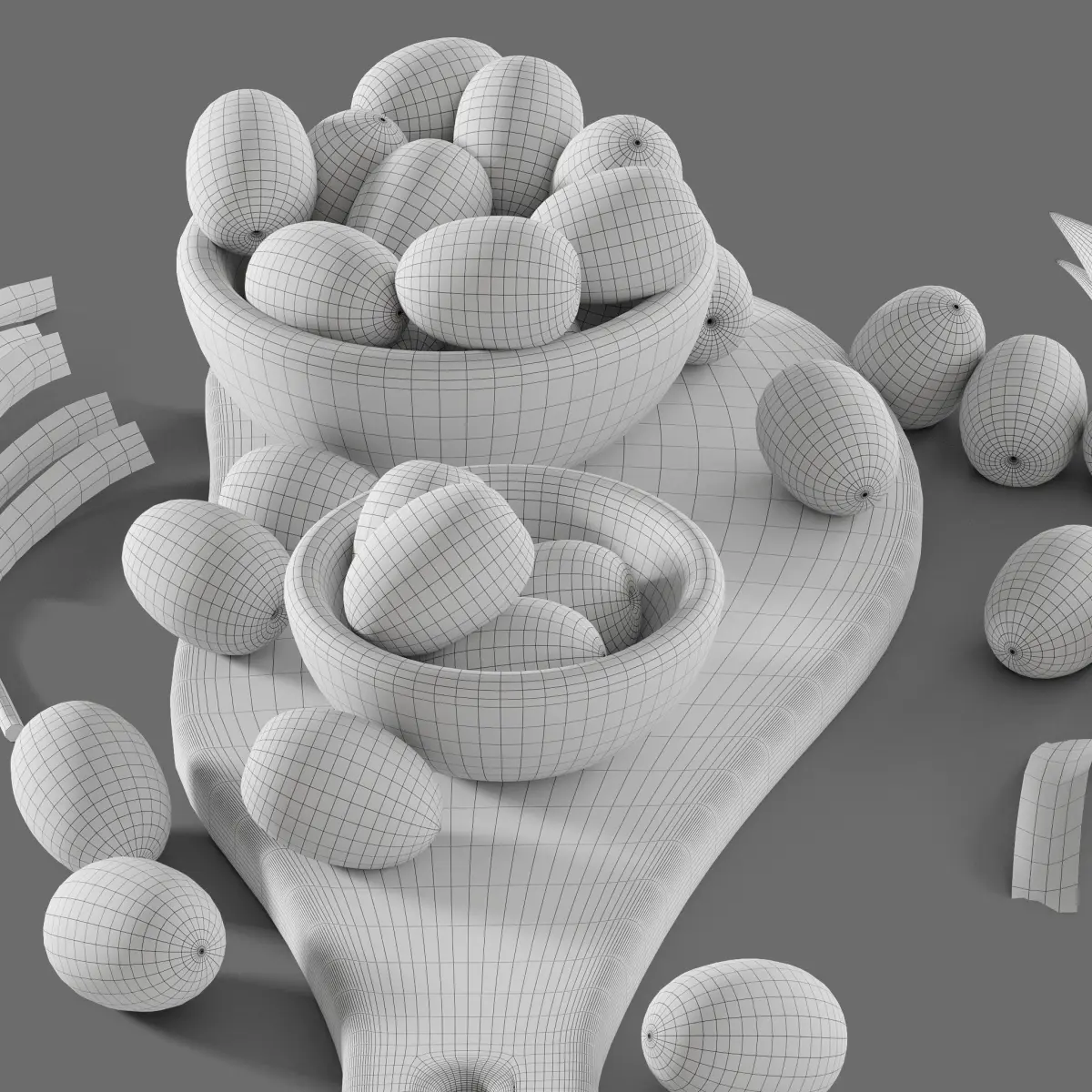This 3d model Decor Set 90 Olives in a wooden dish has fully textured, detailed design that allows for close-up realistic renders.
