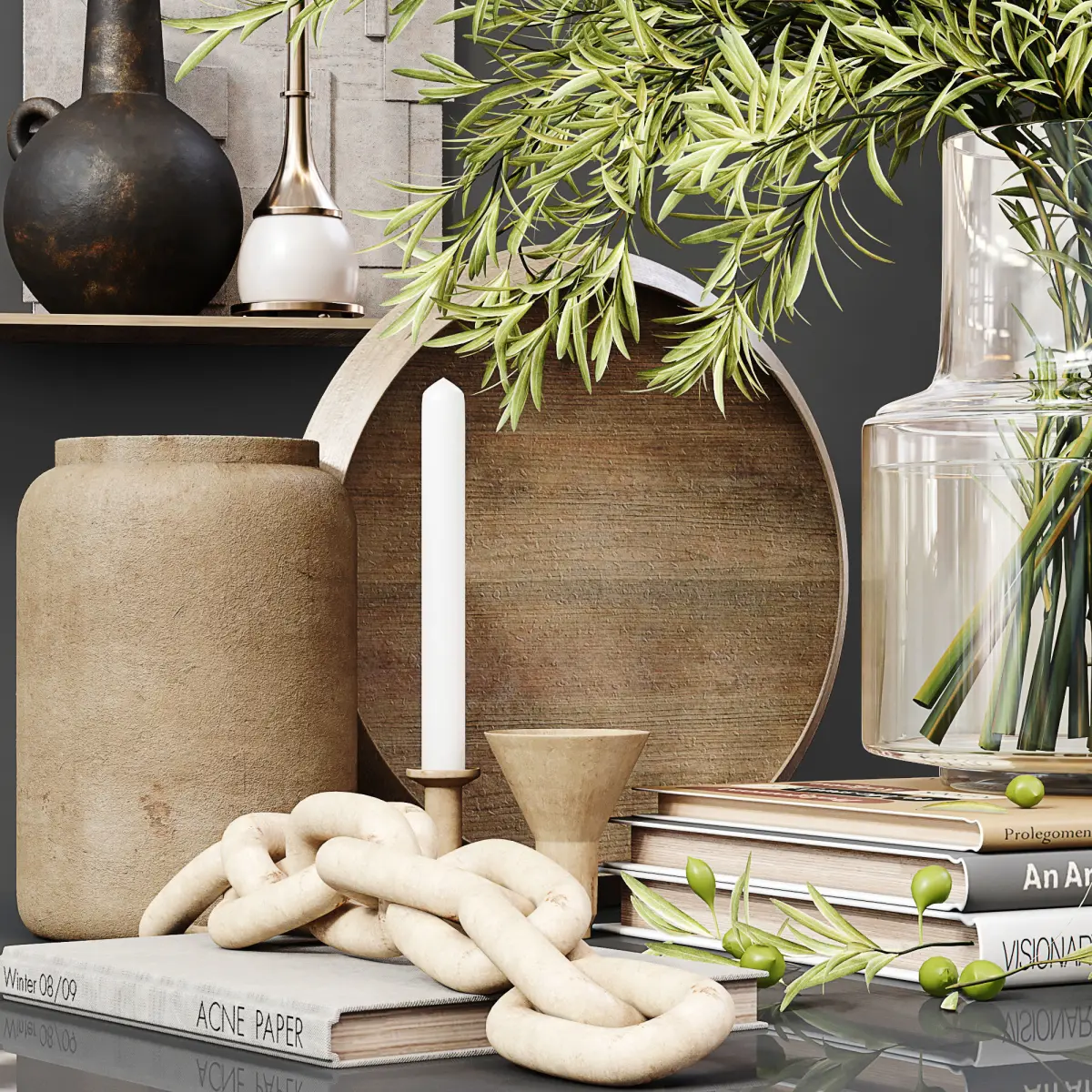Decor Set 043———————————————High quality model Detailed enough for close up renders—————————————In the archive: 3Dmax 2012 (Vray + Corona) + OBJ + FBXPolys: 1.001.628Verts: 1.359.867System units: mmThe models have a TurboSmooth modifier—————————————Have a nice render