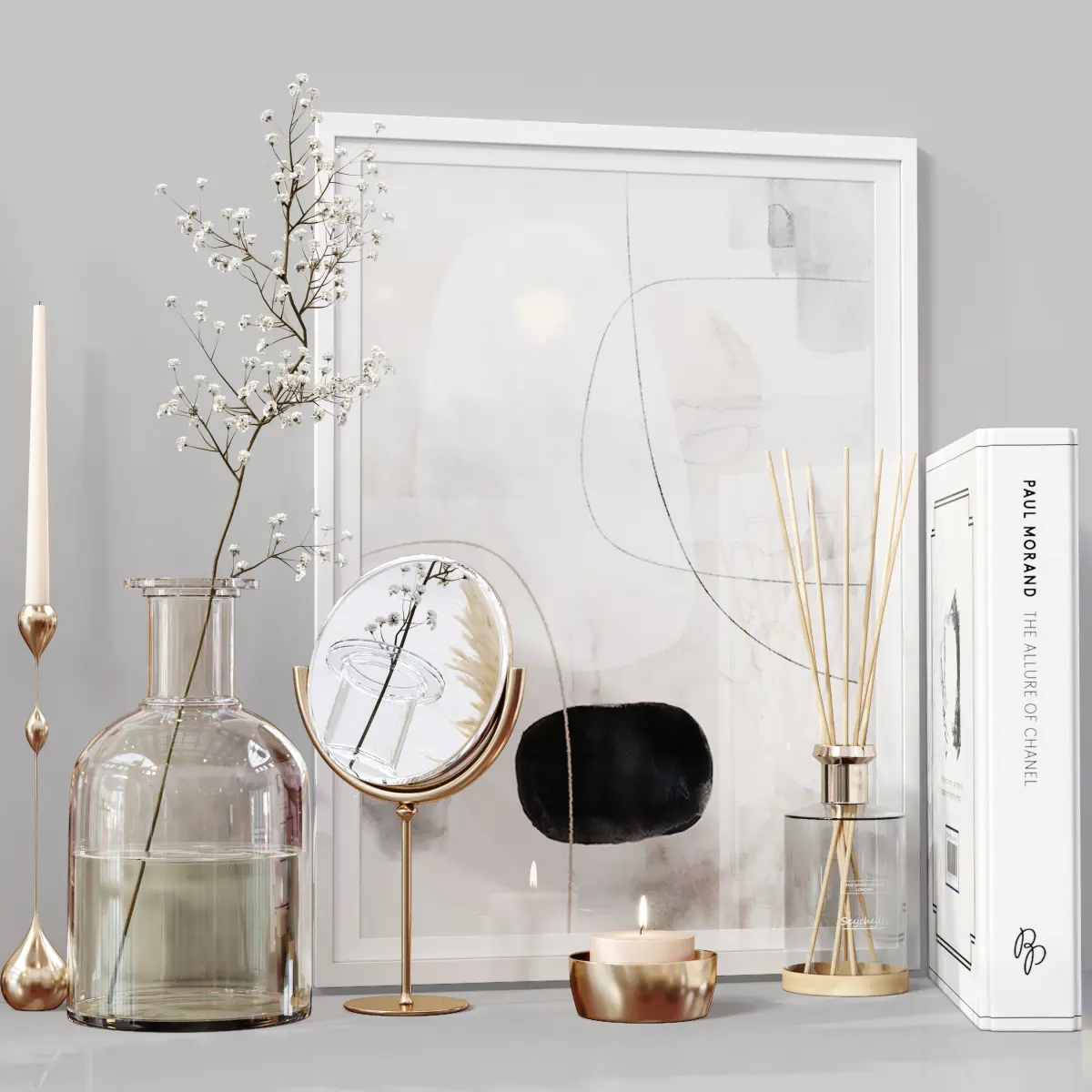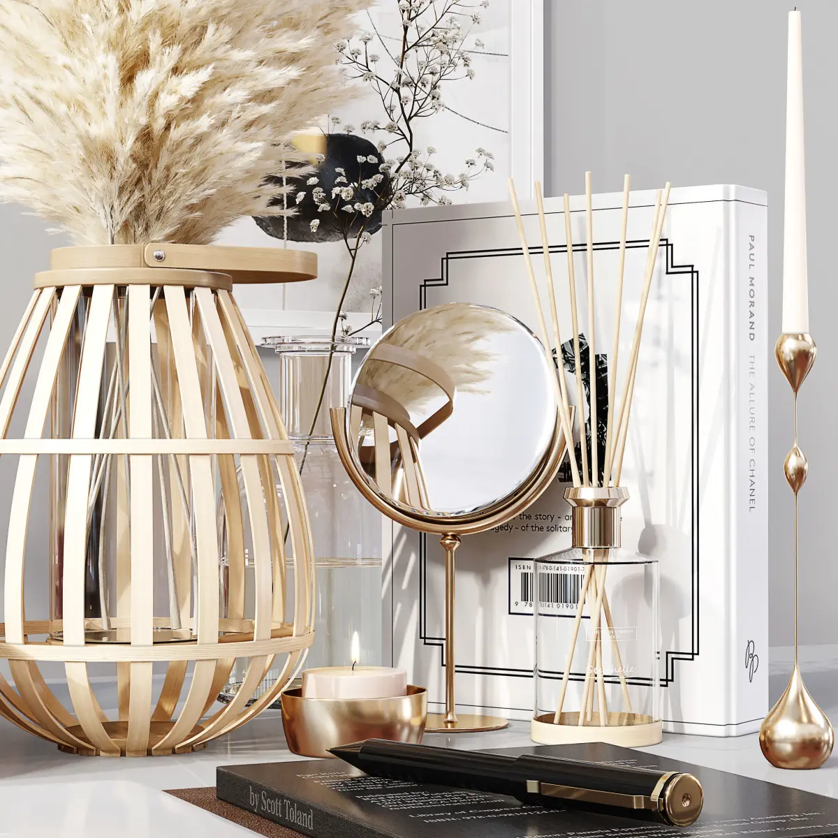 Decor Set 064———————————————High quality model Detailed enough for close up renders—————————————In the archive: 3Dmax 2014 (Vray + Corona) + OBJPolys: 1.269.348Verts: 2.120.164System units: mmThe models have a TurboSmooth modifier—————————————Have a nice render