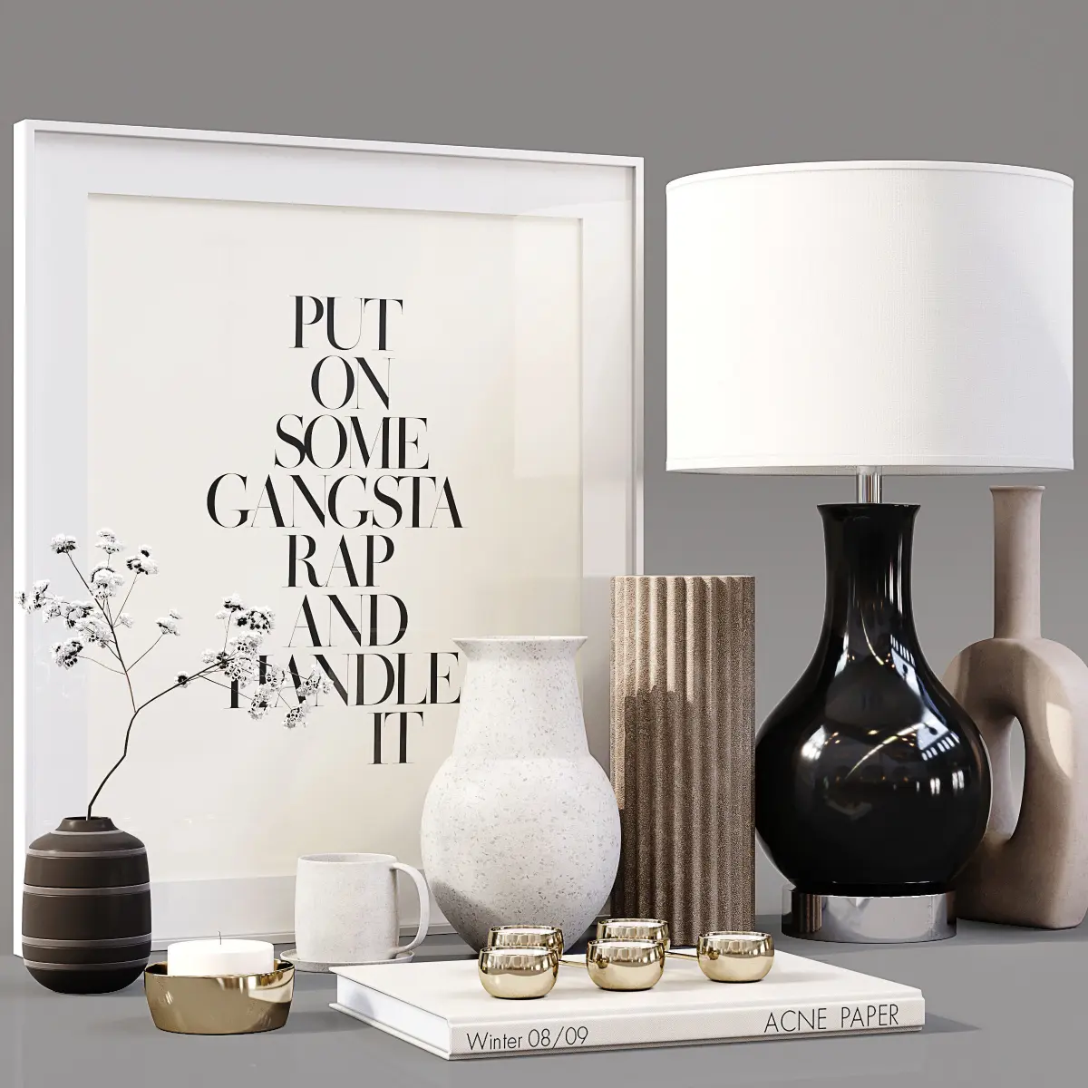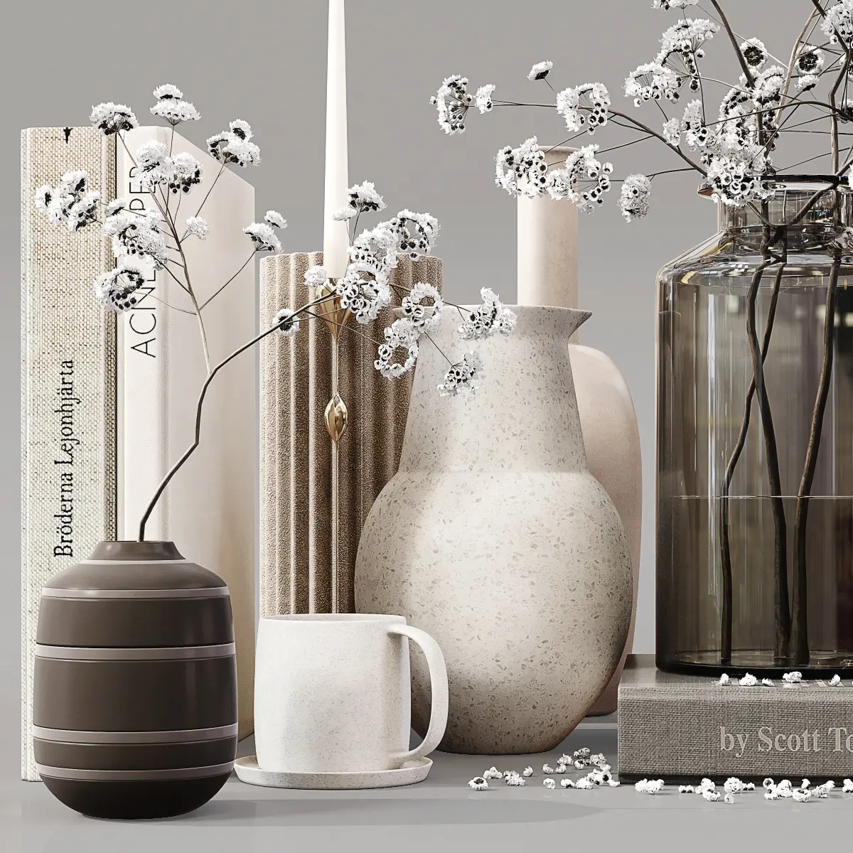 Decor Set 065———————————————High quality model Detailed enough for close up renders—————————————In the archive: 3Dmax 2014 (Vray + Corona) + OBJPolys: 1.010.863Verts: 1.108.973System units: mmThe models have a TurboSmooth modifier—————————————Have a nice render