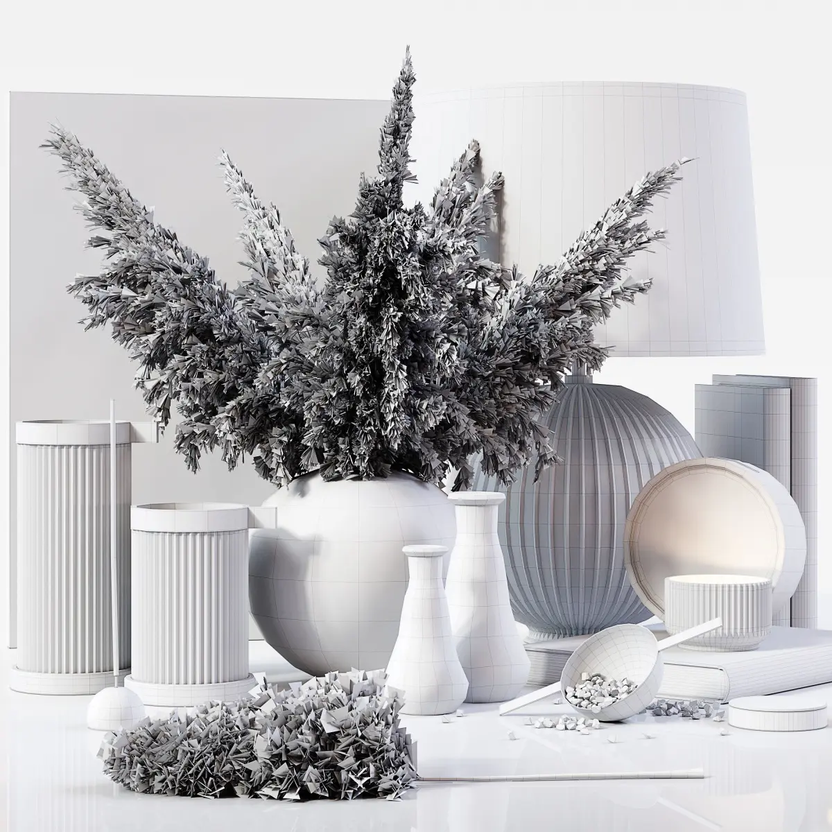 Decor Set 073———————————————High quality model Detailed enough for close up renders—————————————In the archive: 3Dmax 2014 (Vray + Corona) + OBJ + FBXPolys: 1.066.028Verts: 1.686.139System units: mmThe models have a TurboSmooth modifier—————————————Have a nice render