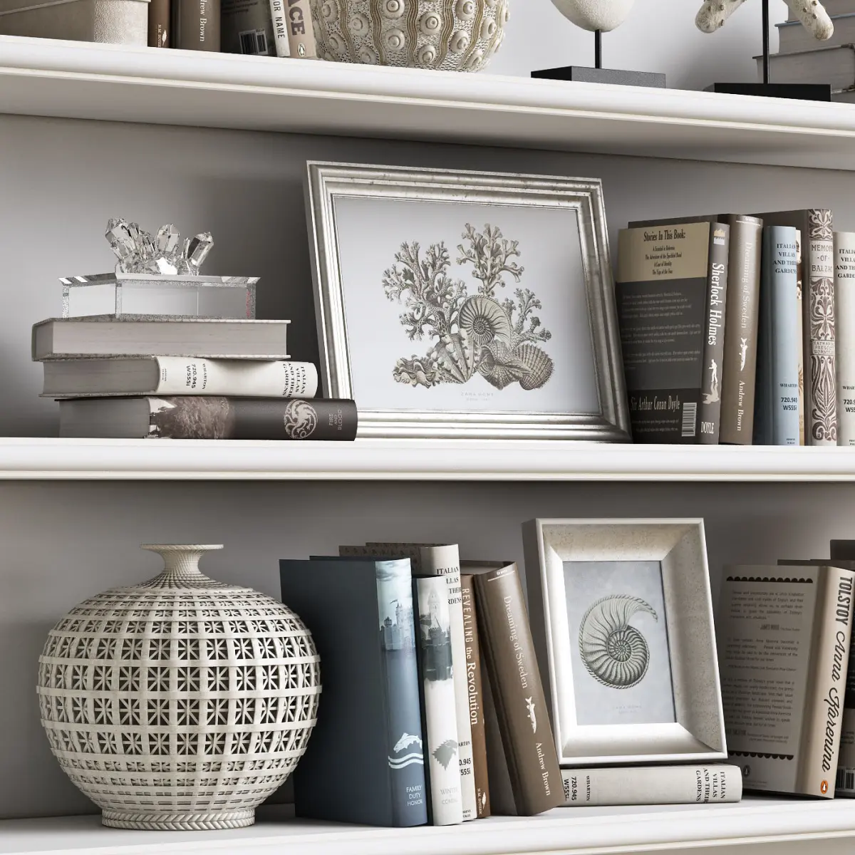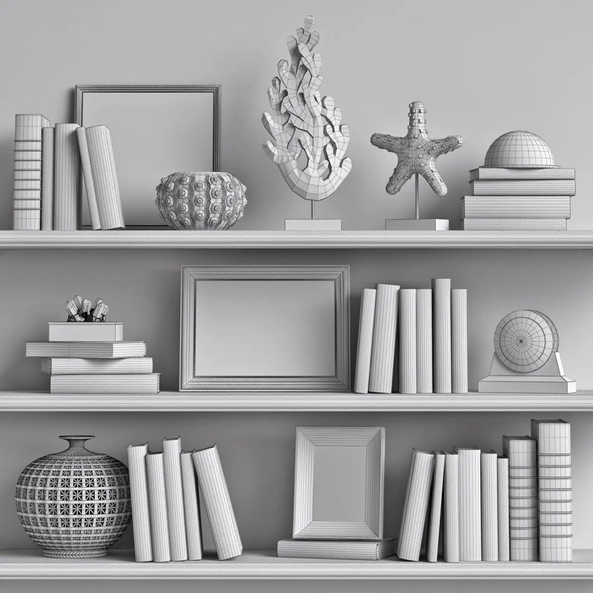 Buy Decor Set 2 bookshelves with seashells 3D model