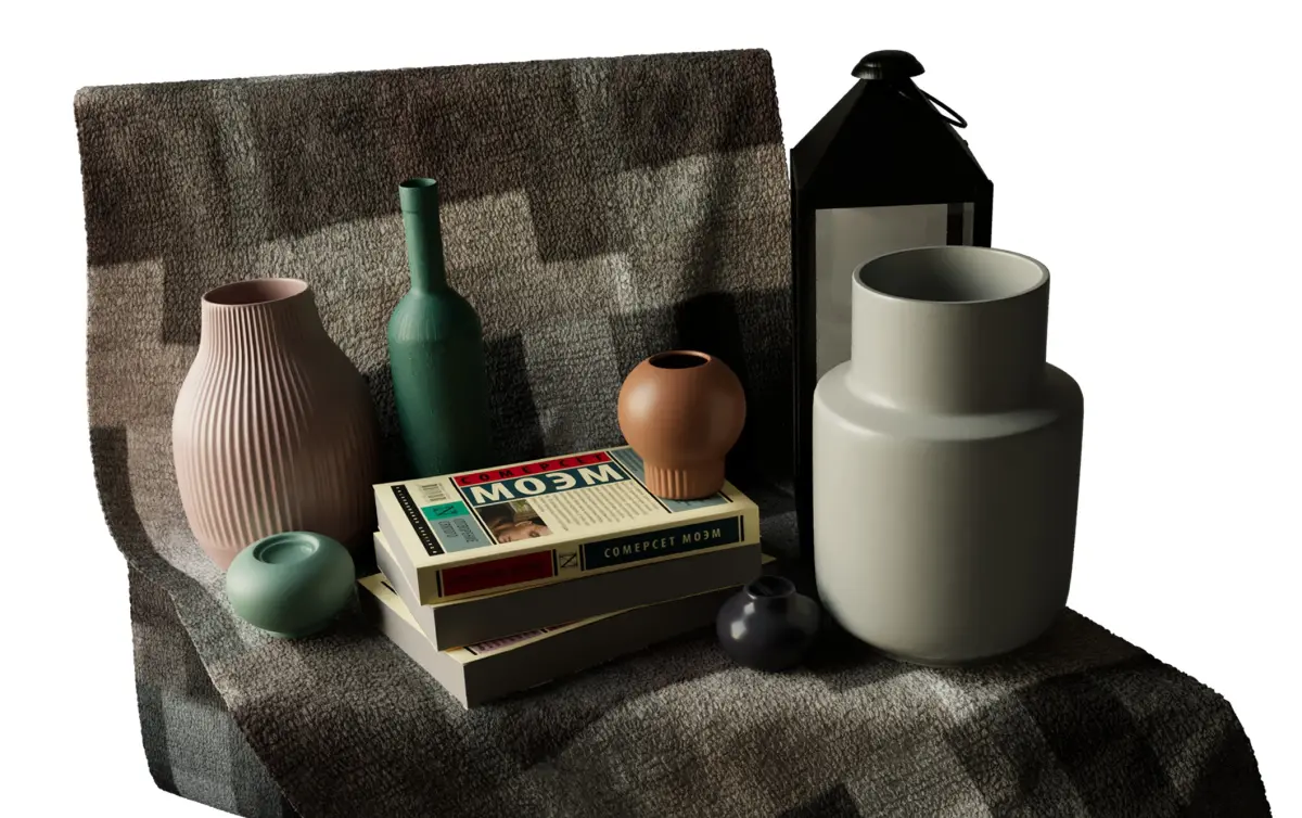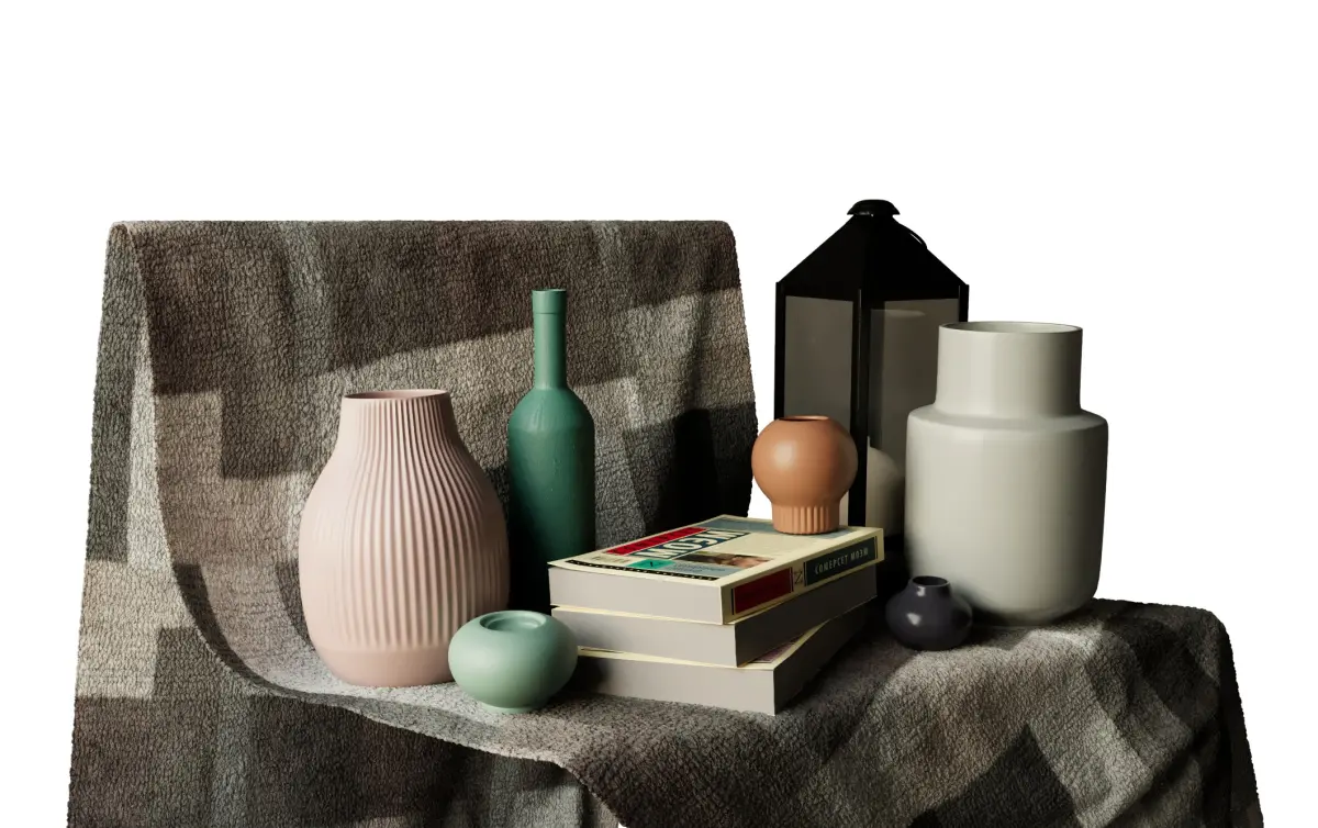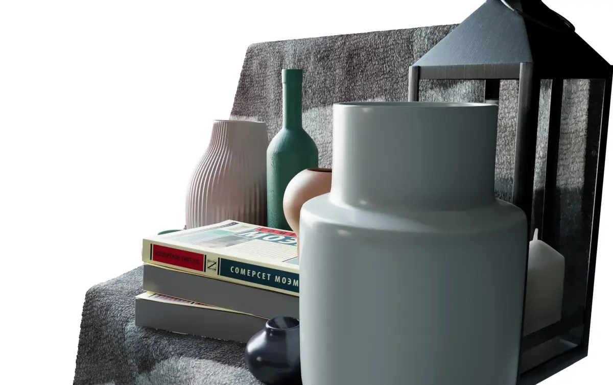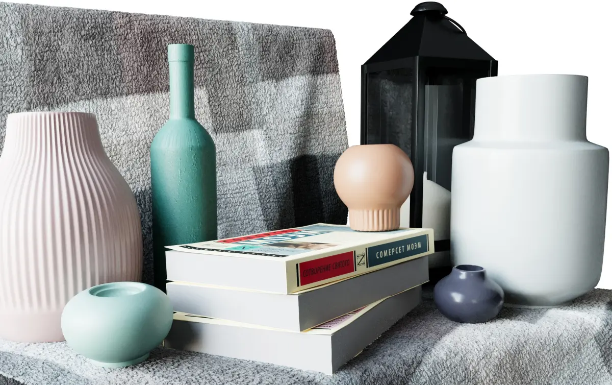 The vases and books are modeled to real-world scale (cm) and are meticulously textured, ensuring seamless integration into any interior environment. The set includes 10 textures and 4 materials, providing a high level of detail and realism.
