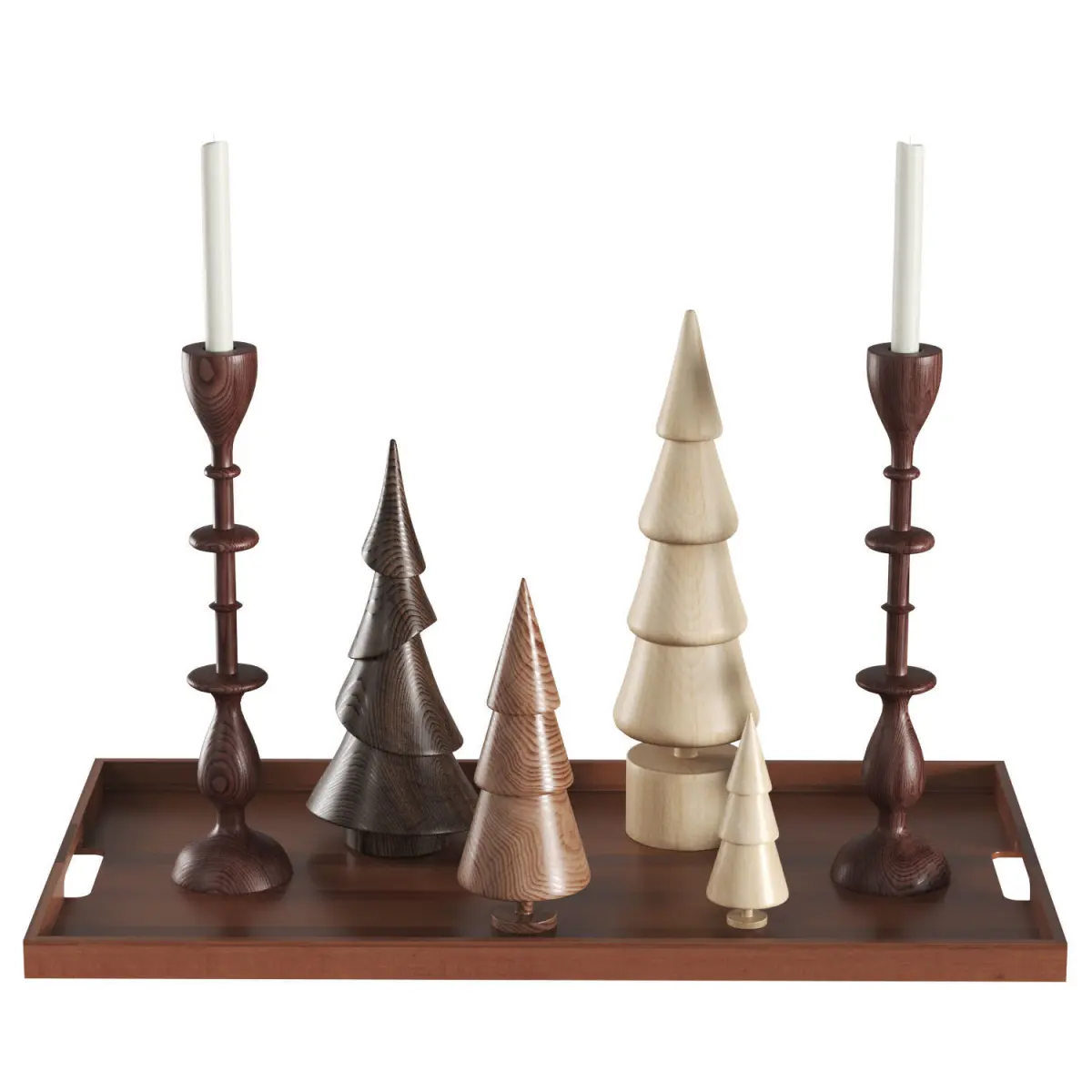 Set of wooden fir trees for the New Year and ChristmasSuitable for decorating a holiday table, fireplace, coffee table, TV stand, chest of drawers, etc.Models have a scan and a loose meshAll paths to textures have been removed, the names are logical and understandable