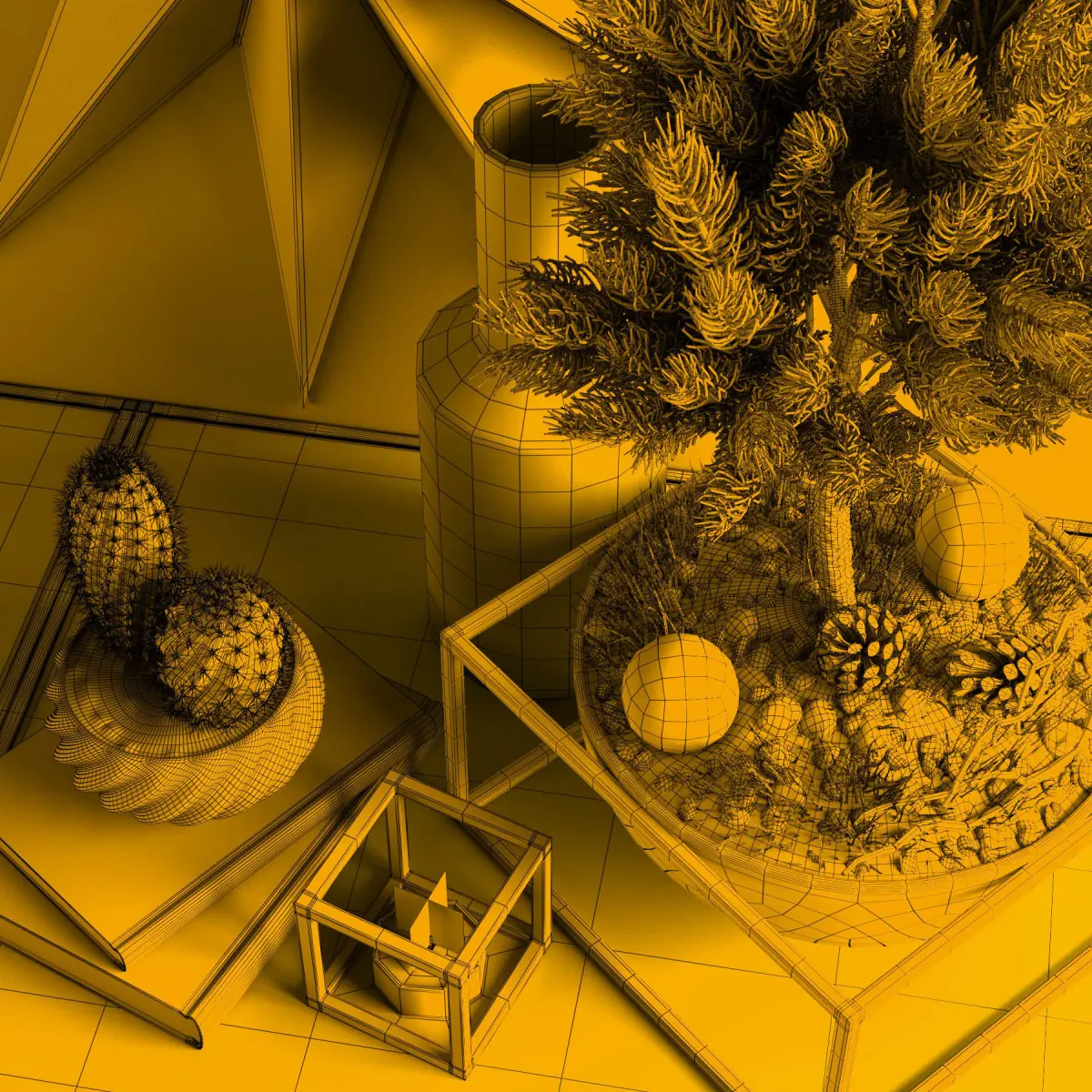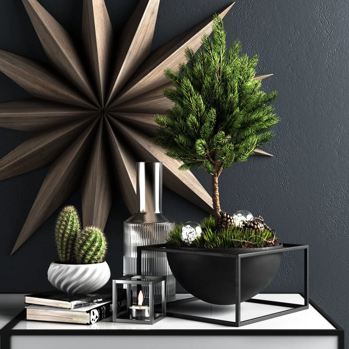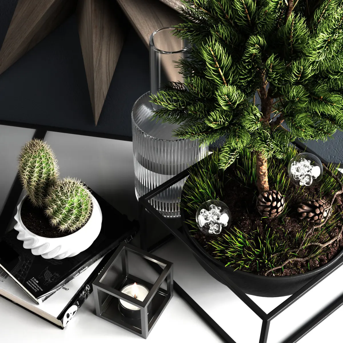 Decorative set with pine.