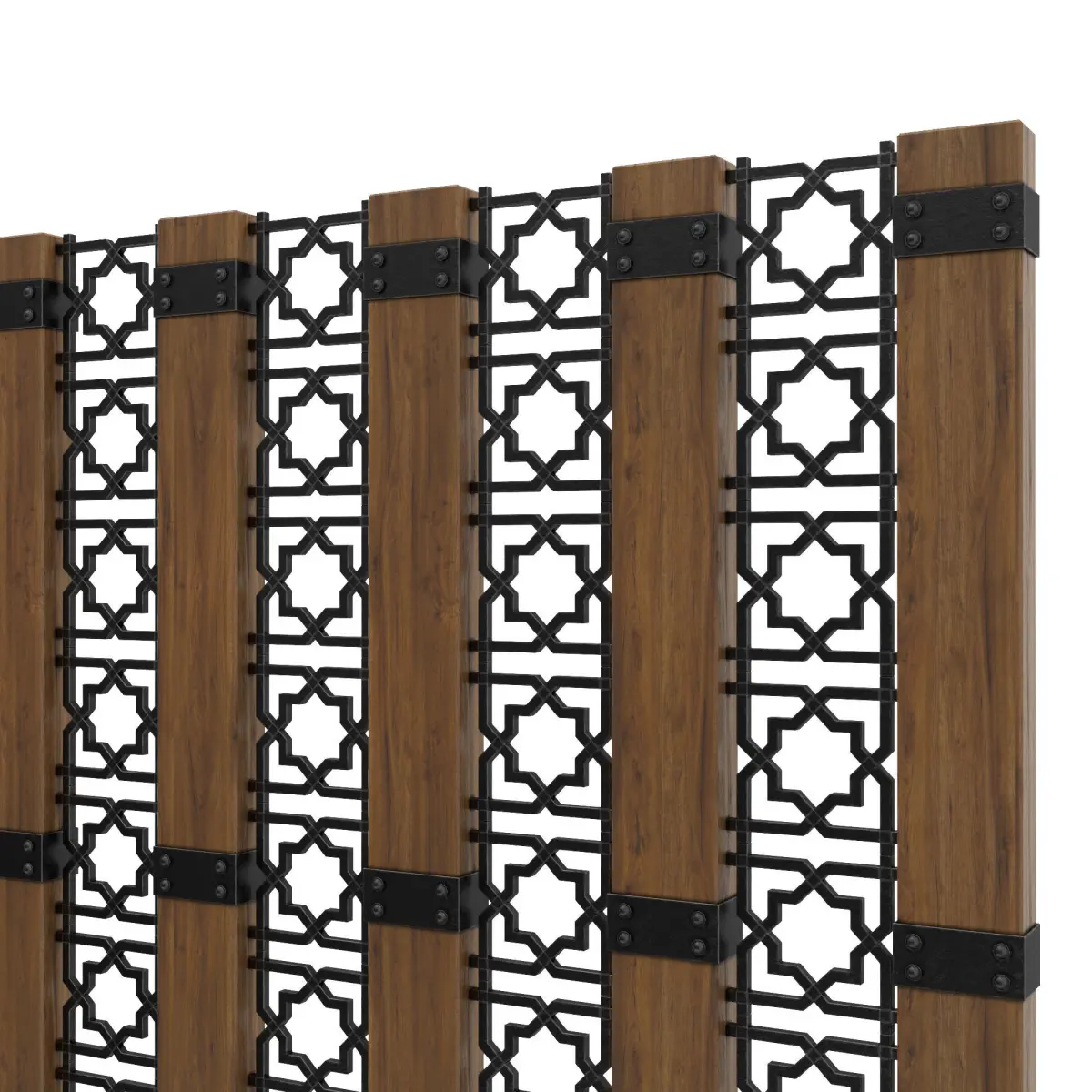 Decor wooden screen with metal bars 3D model