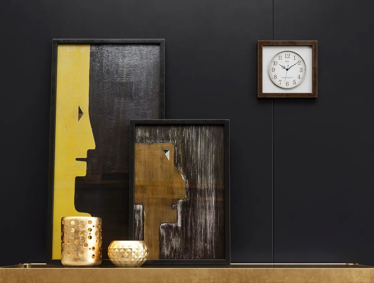 Decorative table with unique style design, simple form, black and gold collocation, coupled with abstract frame photos, both modern and classic, give uniqueness and creativity to the interior design