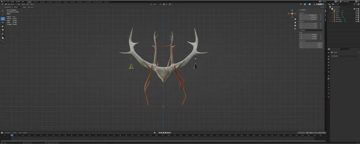 The Blender file has the pieces left unlined - bells, ribbons, and antlers... which allows for careful changes to make it look different. Additionally, the DAE and OBJ provided here are also non-linked pieces.