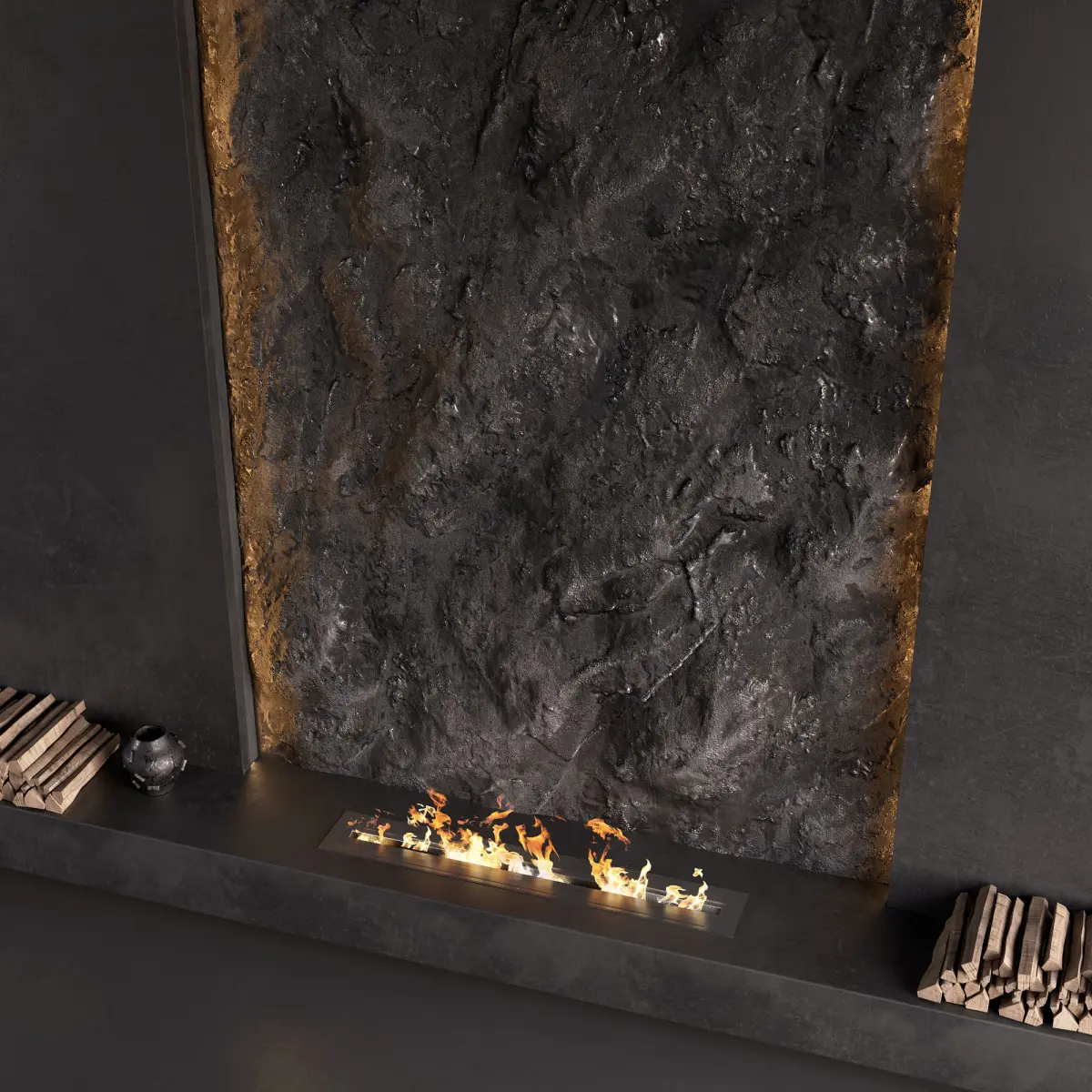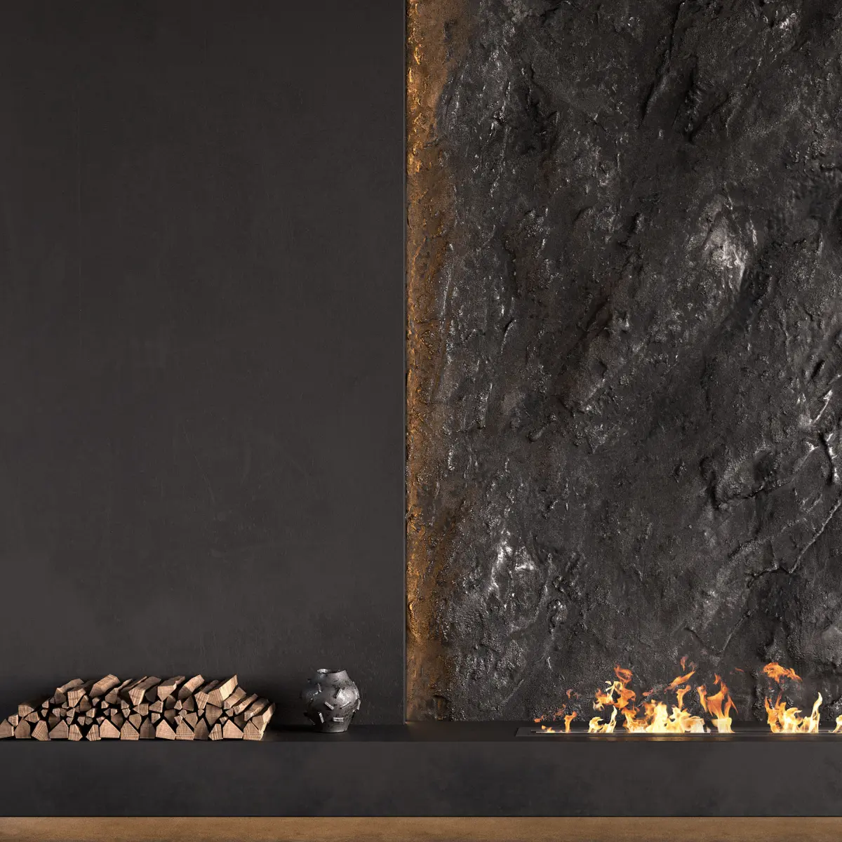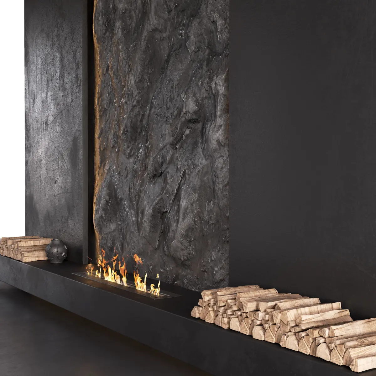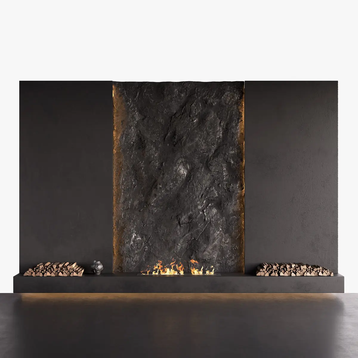 Decorated Rock Wall with Fireplace 3D model