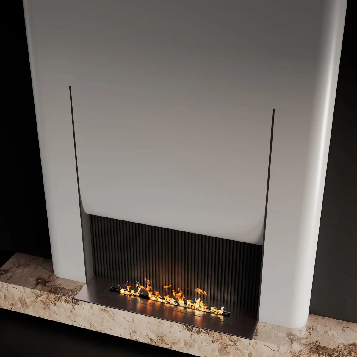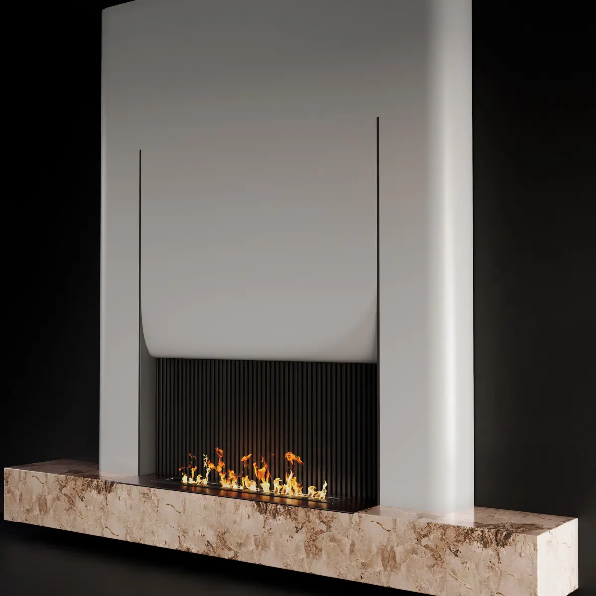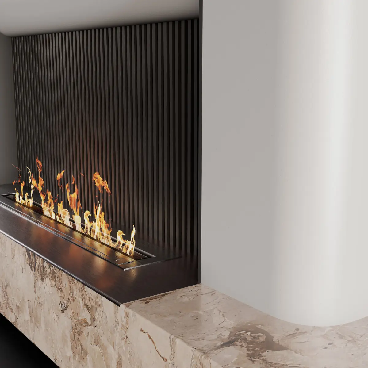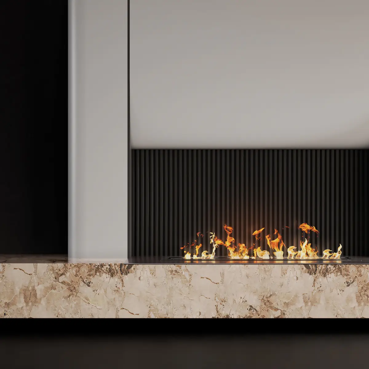 - Contemporary wall composition with fireplace and marble;