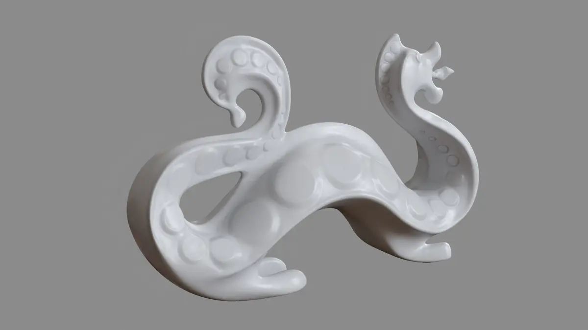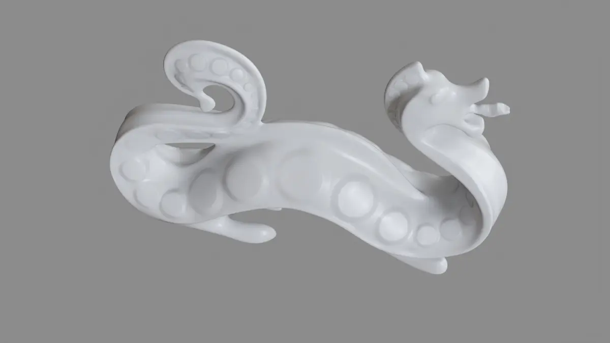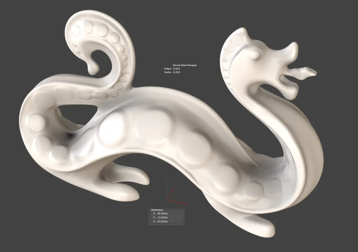 This meticulously crafted 3D model captures the elegant form and mythical essence of a stylized dragon figurine. Inspired by Jonathan Adler's iconic designs, the model features a sleek, elongated body with flowing lines and intricate details. The dragon's pose exudes grace and power, making it a captivating centerpiece for any space.