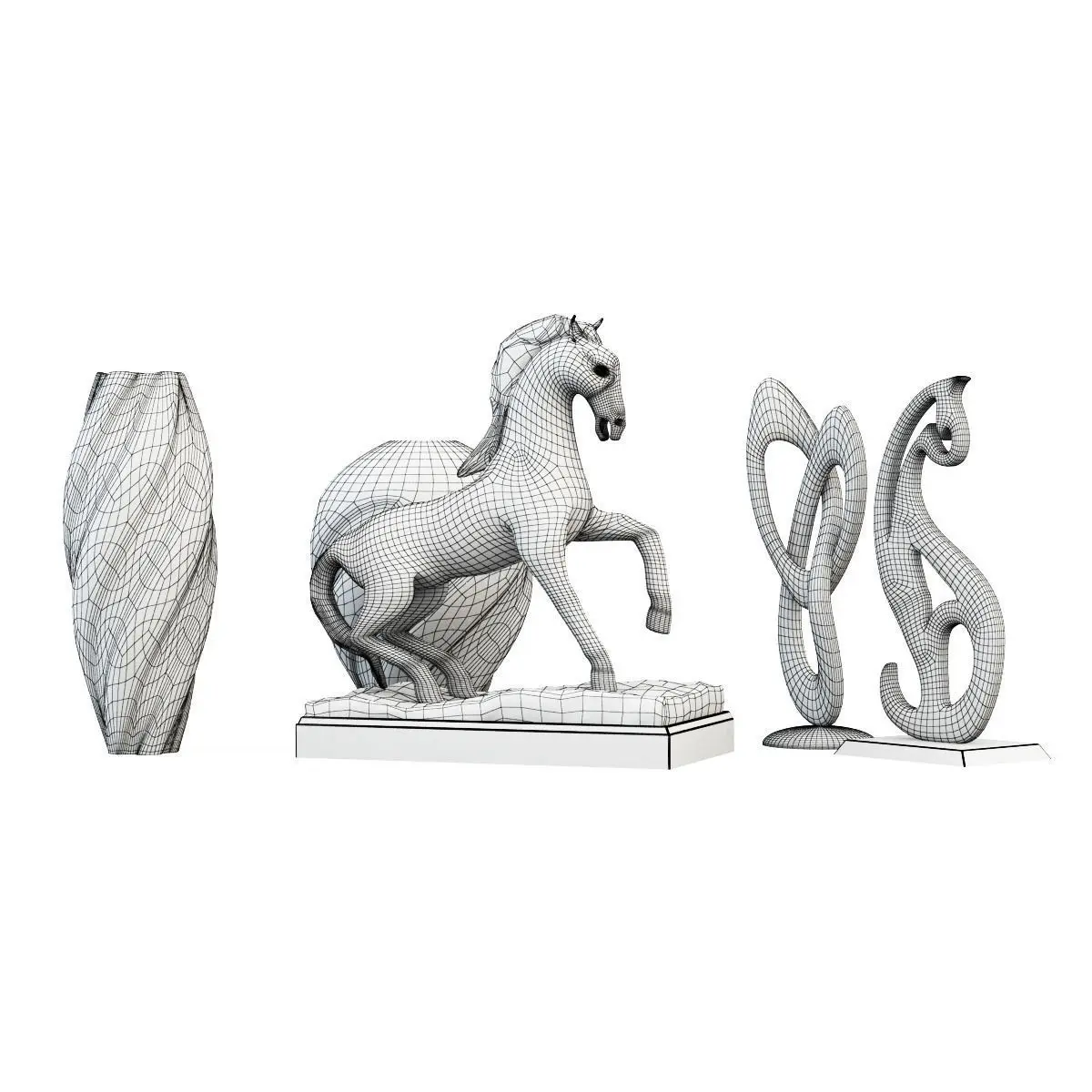 Decoration gold vases and statues 3D model
