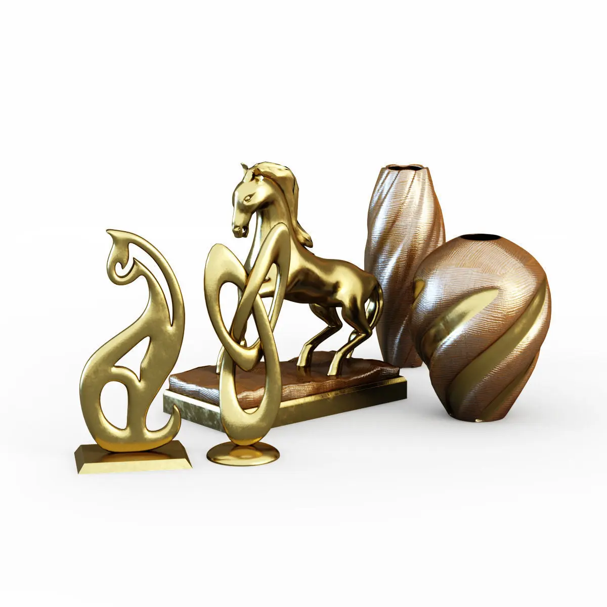 HomeCatalogDecoration gold vases and statues 3D model