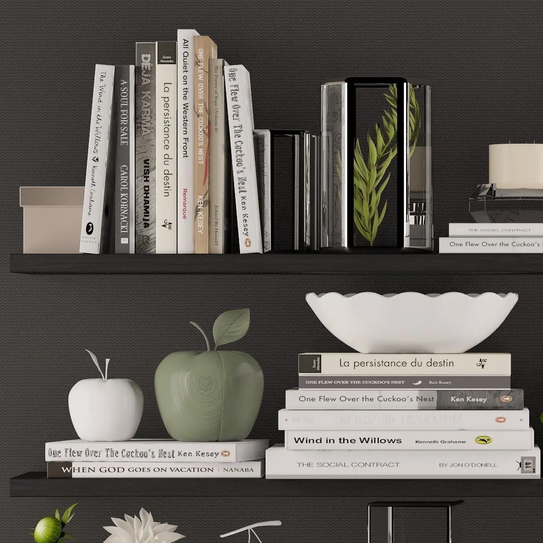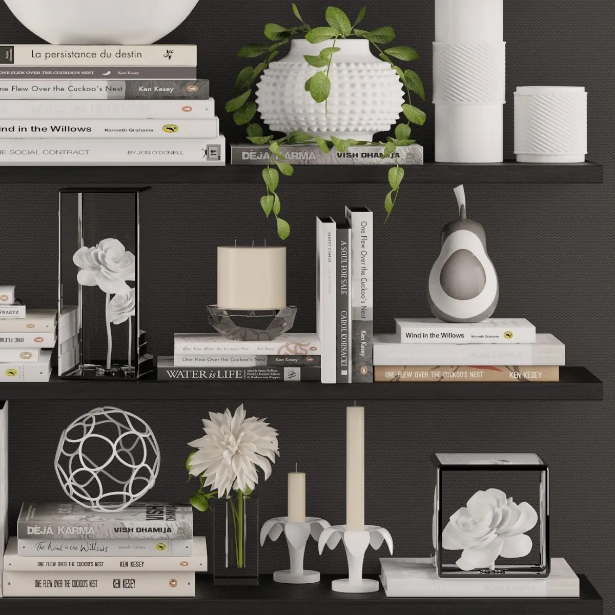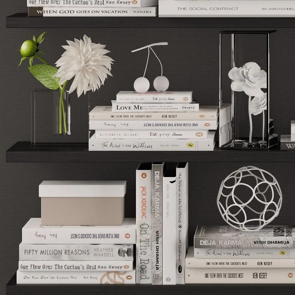 Decoration set 3 bookshelves with plants and flowers 3D model