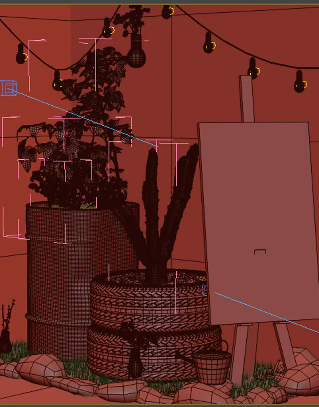 a decoration set for coffee shop that contains coffee menu, plants and lamps