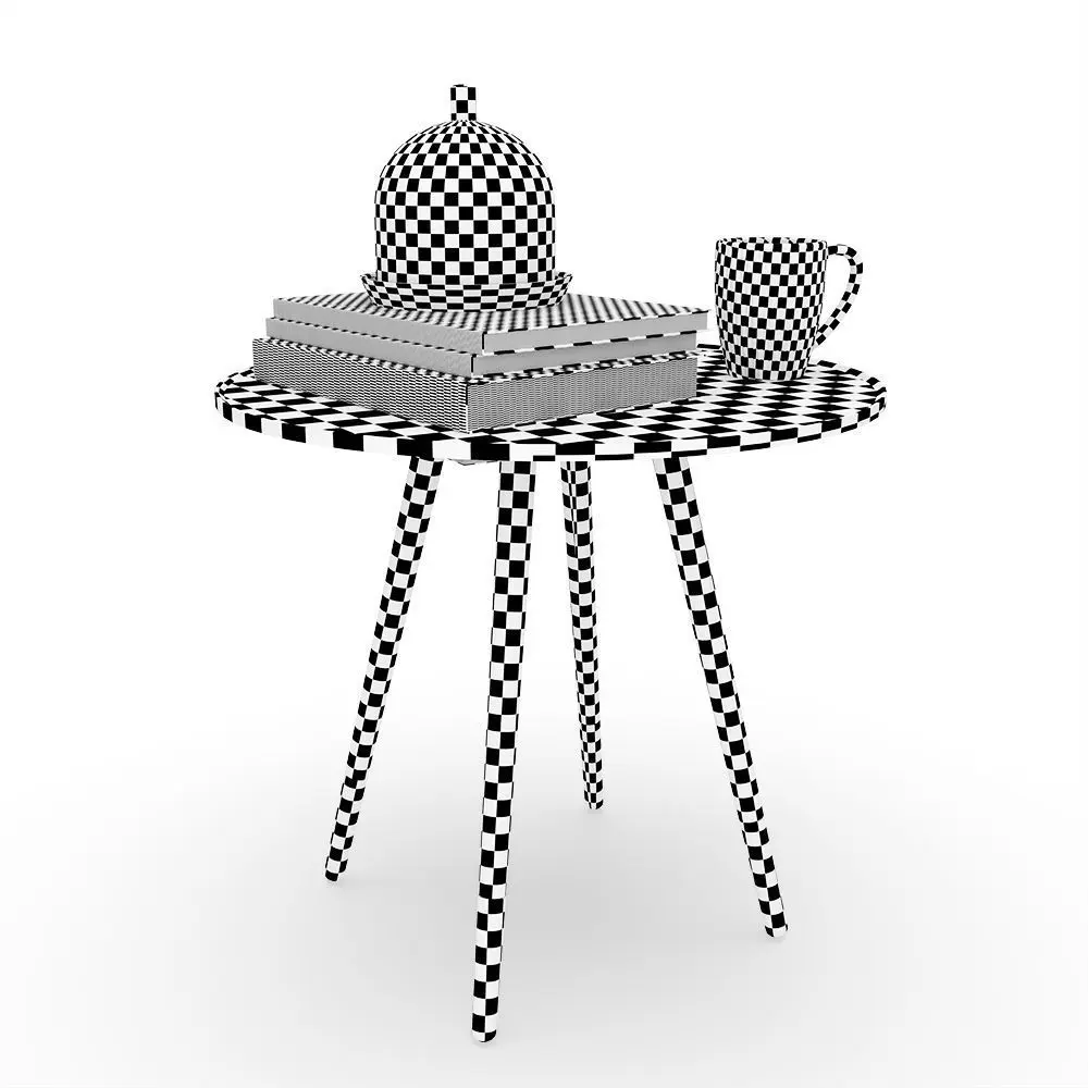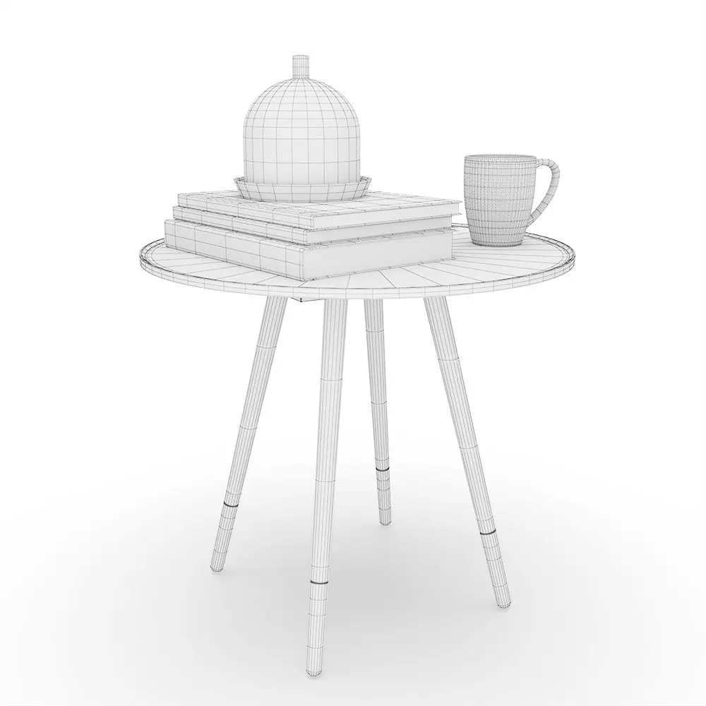 Set of 3D models for interior decoration. Contains coffee table, three books, glass dome with airplant and coffee cup.