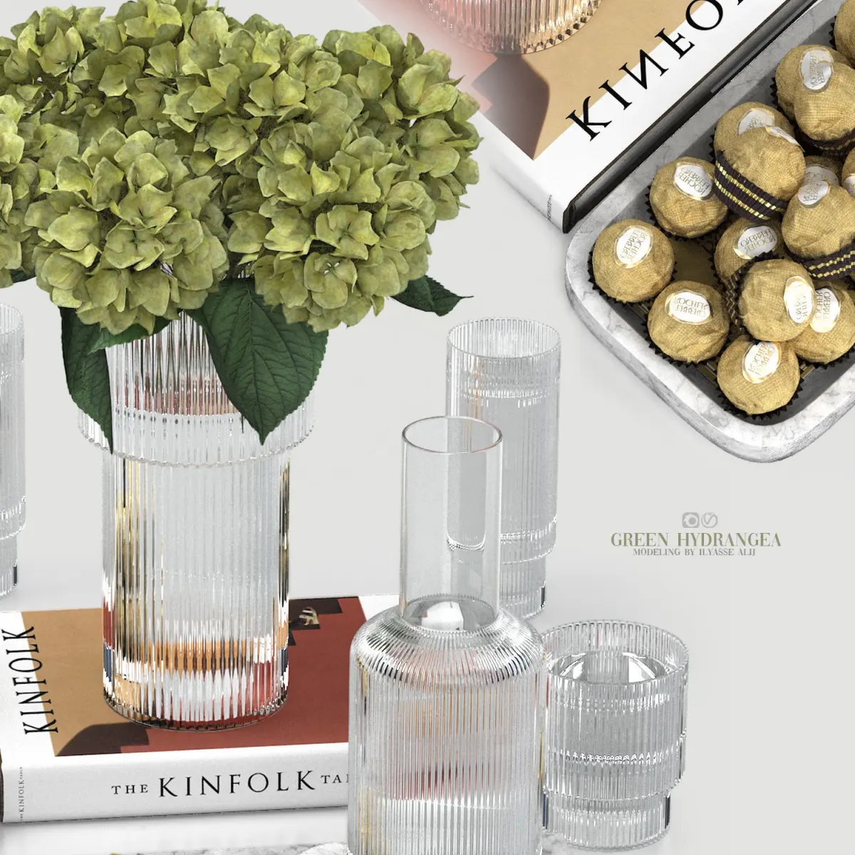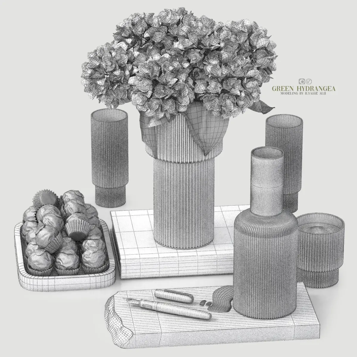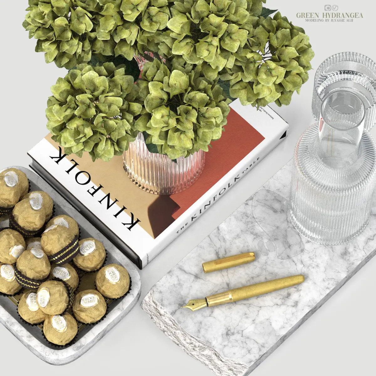 decoration set with green hydrangea 3D model