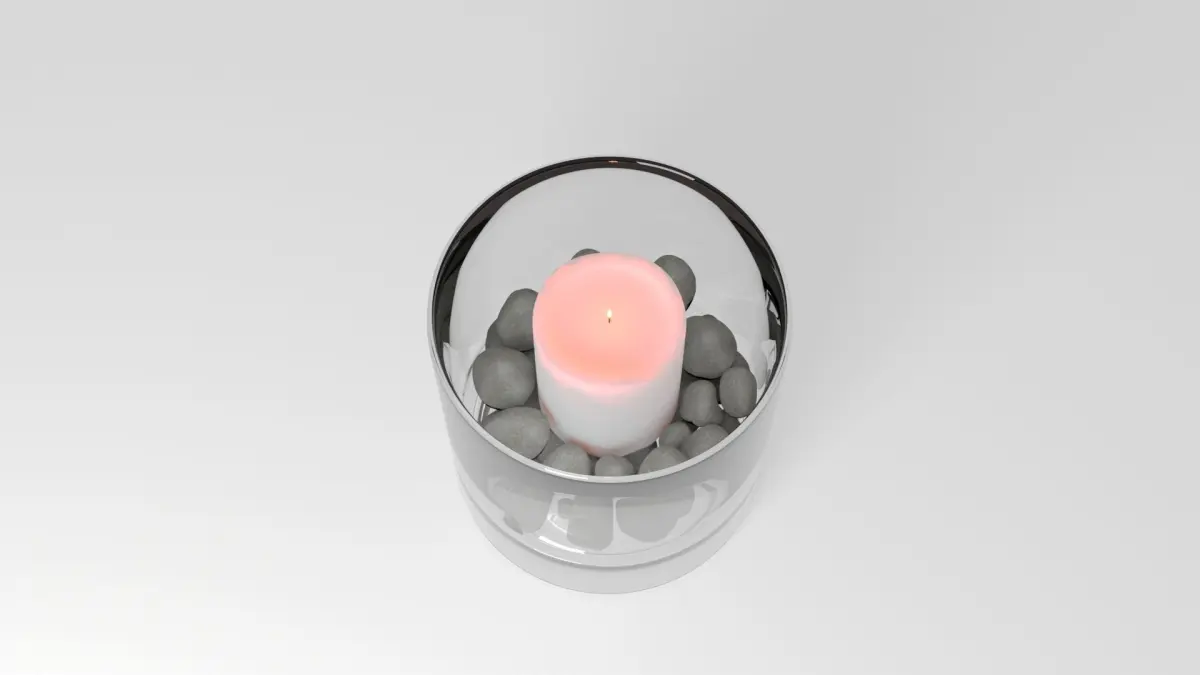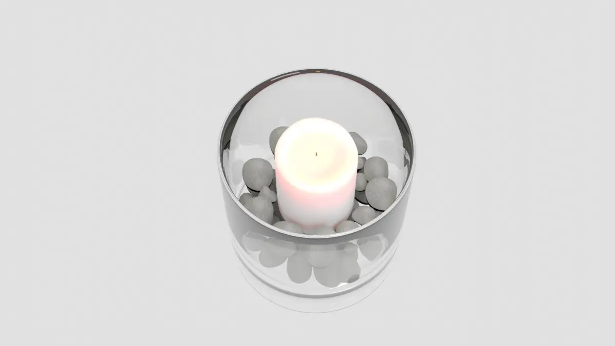 - This object is decorative, it is a glass glass with a candle filled with river stones.