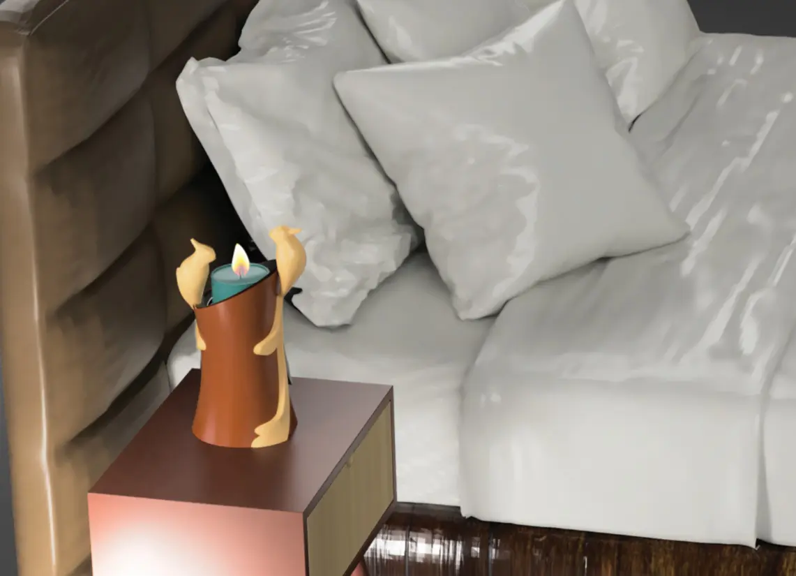This 3D model is ideal for use in product visualizations, interior design renders, or 3D printing for home decor. The candle holder features an organic base with flowing lines, supporting a stylized bird form gently cradling a tealight candle.