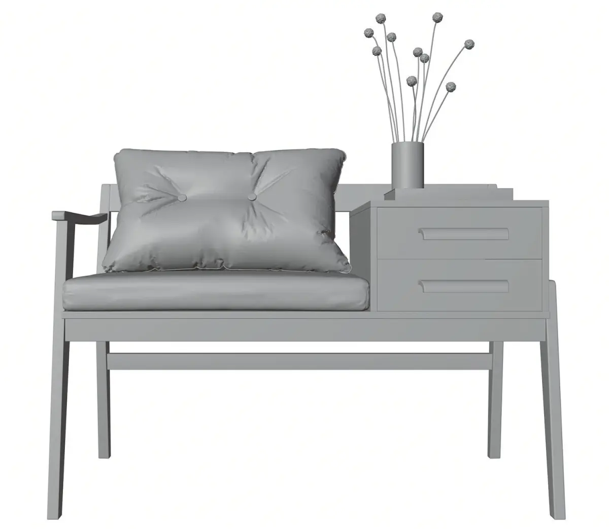This high quality model includes wooden bench with a soft seat and a colorful cushion. Model prepared for 3d architectural visualisations and other graphic works.