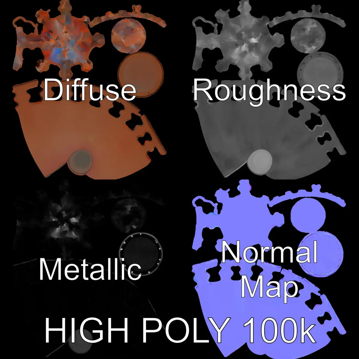 This decorative chimney pipe model pack features 3 levels of detail: low-poly for mobile applications, middle-poly for environments, and high-poly for production rendering. Designed with PBR textures including Diffuse, NormalMap, and roughness/metallic, this model suits any modern rendering engine. It is ideal for architectural visualizations, interactive presentations, and game environments. The model's accurate unwrapping ensures no overlapping UVs. All textures are 4096*4096 in size.