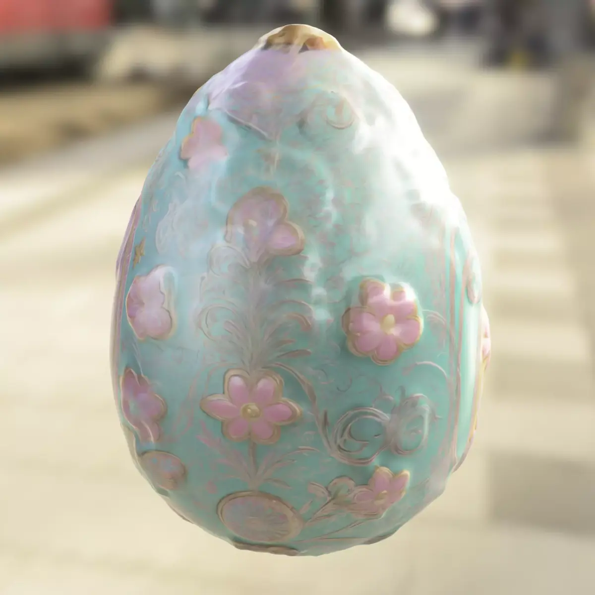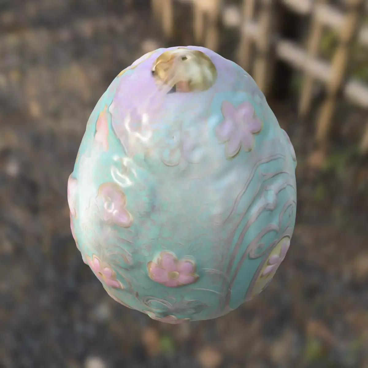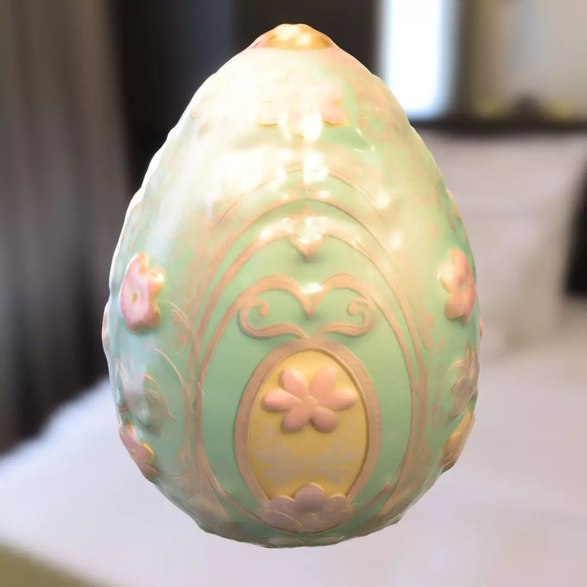 A highly detailed 3D model of a decorative fantasy egg featuring a smiling surrounded by floral patterns. Perfect as a collectible prop, decorative item, or magical object in popular games such as The Sims, Roblox, Second Life, World of Warcraft, Skyrim, Unity, and Unreal Engine. This asset is ideal for fantasy, cozy, or seasonal-themed projects, and it is also optimized for 3D printing as a unique ornament, display piece, or gift. Provided in OBJ, FBX, STL, DAE, PLY, GLB, and Blender formats.