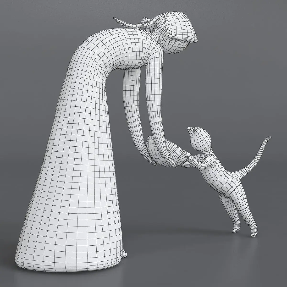 decorative figurine of a woman feeding a cat Low-poly 3D model