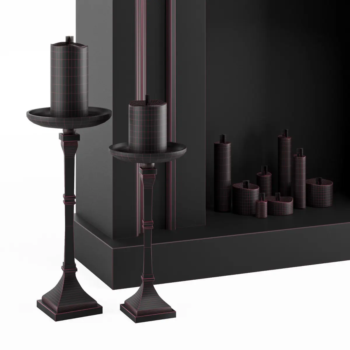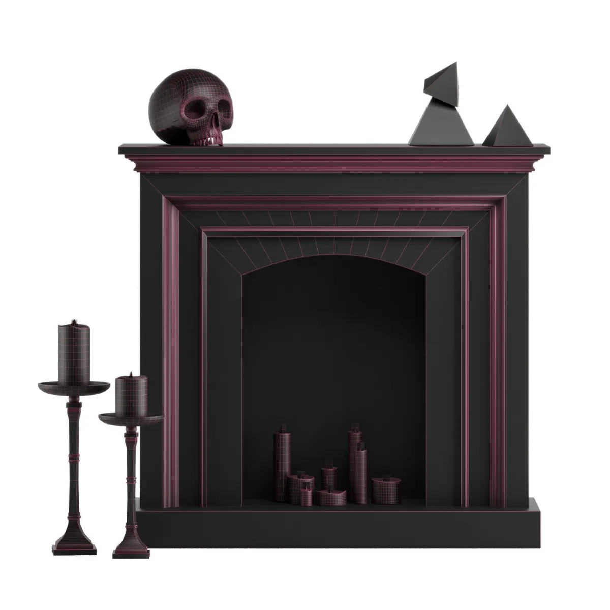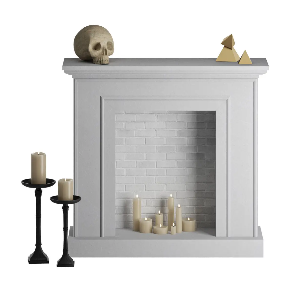 - includes: fireplace, candles, candle holder, scull, pyramids