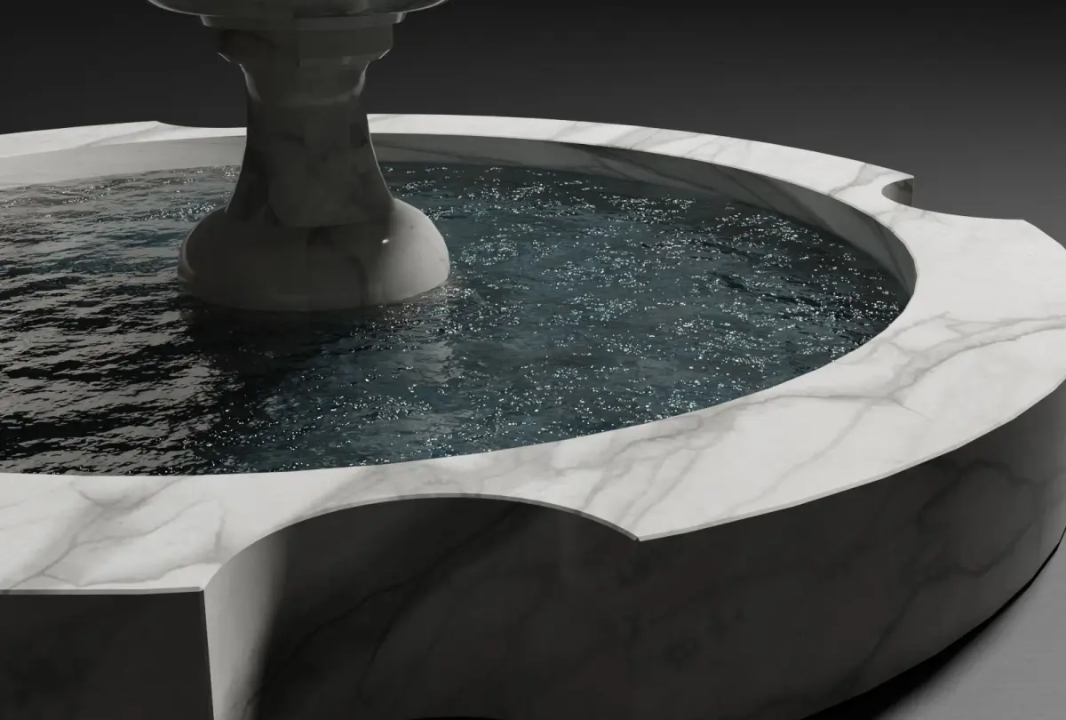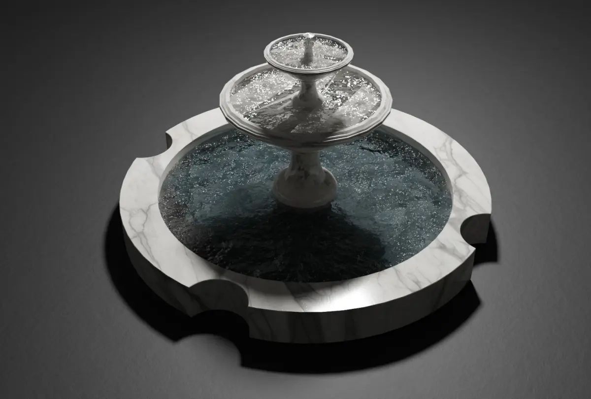 Decorative fountain 3d model with water. Designed in Blender 3.0 .