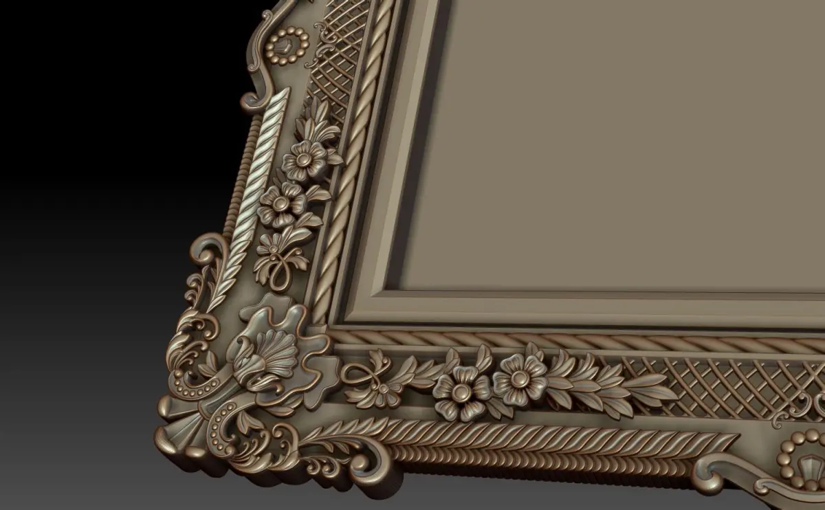 Decorative frame (Wall mirror, picture frame). 3d relief for cnc-systems. Decorative pattern for milling on CNC machines. Can be used in the production of souvenirs, furniture, jewelry. Files in stl format, for import to artcam, rhinoceros, 3ds max, etc. You can scale the model to any size you need.