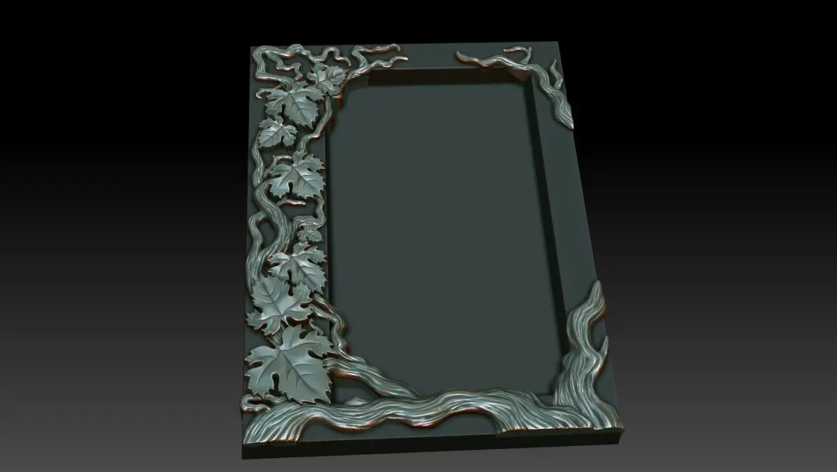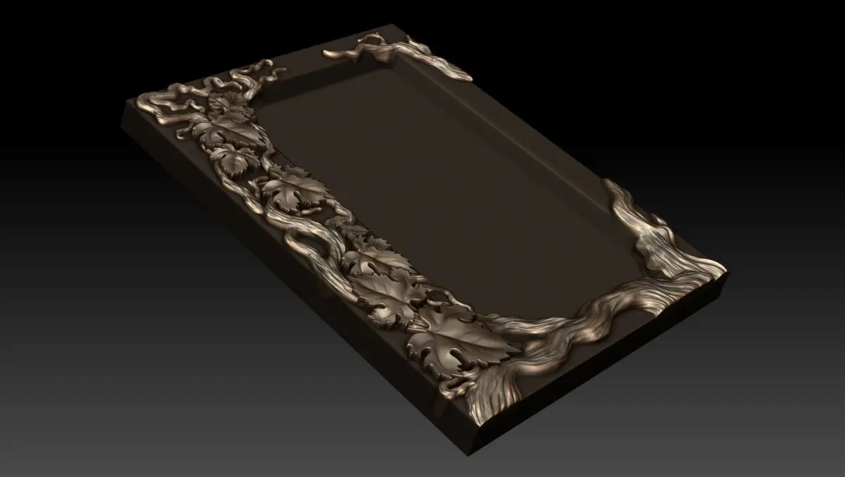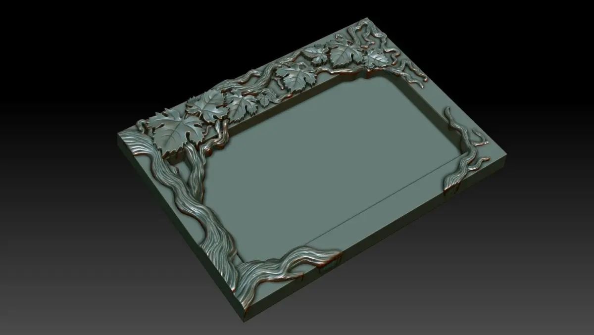 Decorative frame with grape leaves, 3d model of the decorative frame for milling on CNC machines. Can be used in the production of souvenirs, furniture, jewelry. Files in stl format, for import to artcam, rhinoceros, 3ds max, etc.