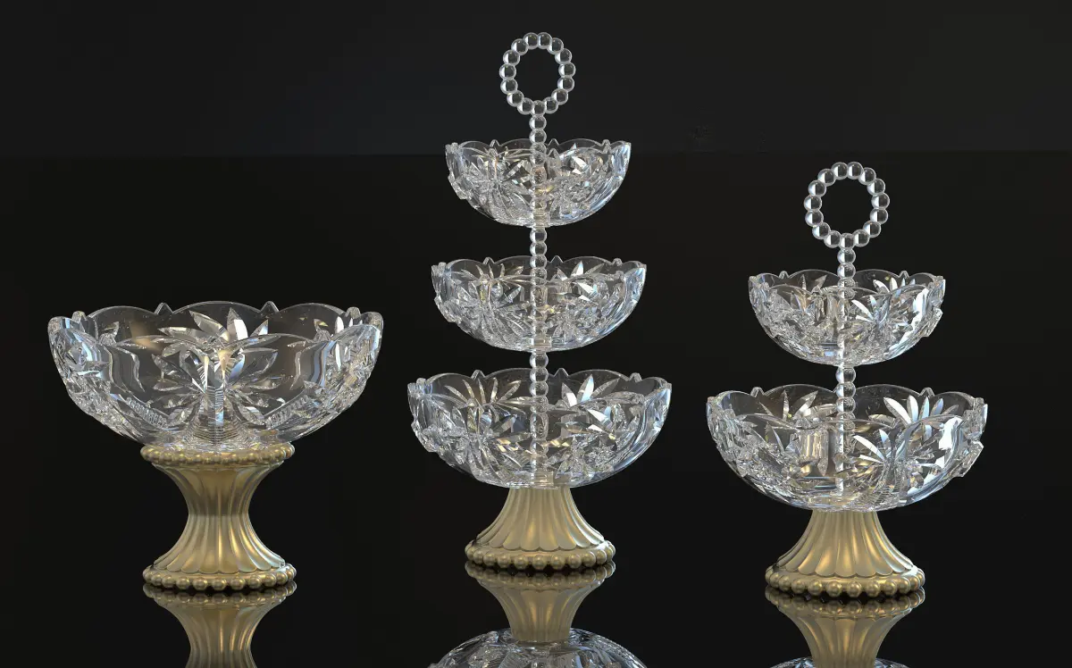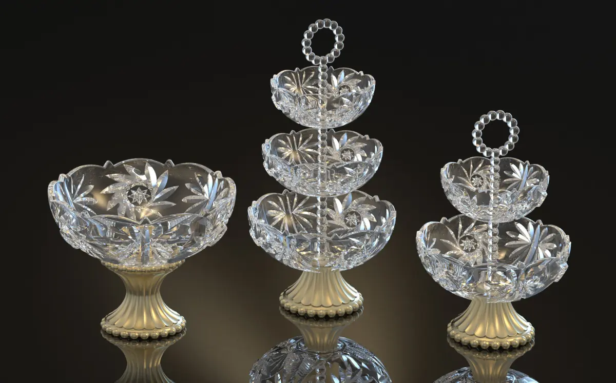 design of antiques crystal engraved bowls and stem .