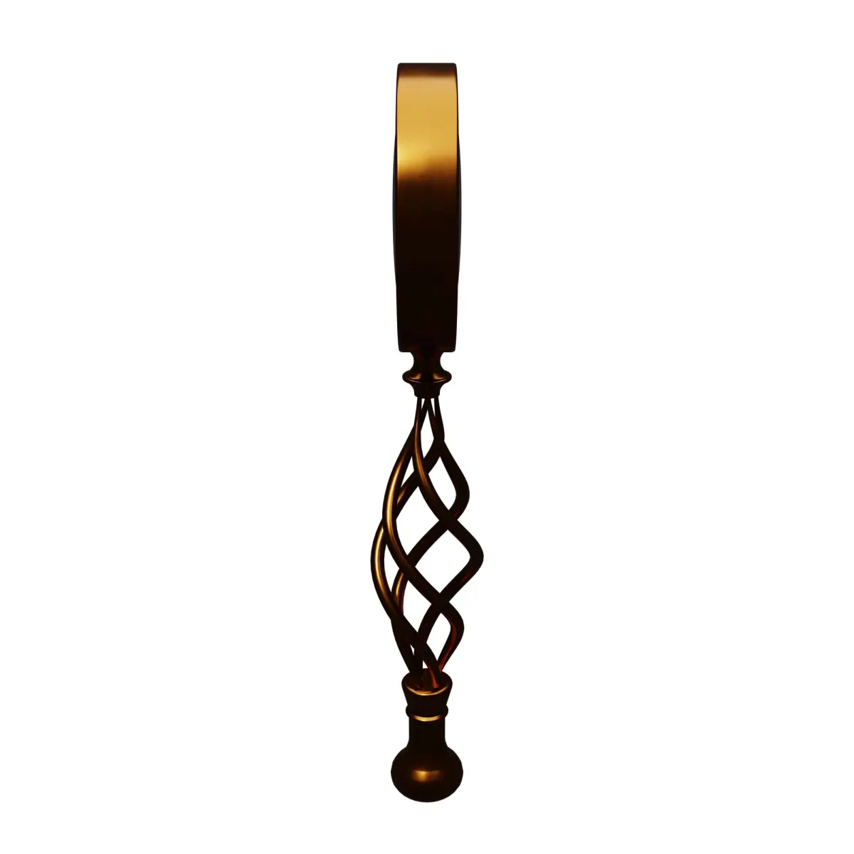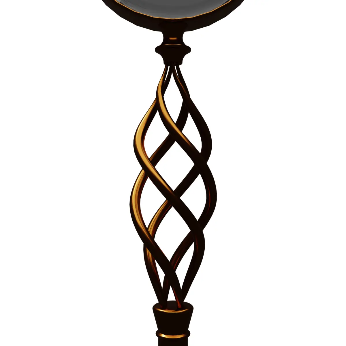 Stylized Antique Design: Unique twisted handle with metallic finish and realistic glass shader.