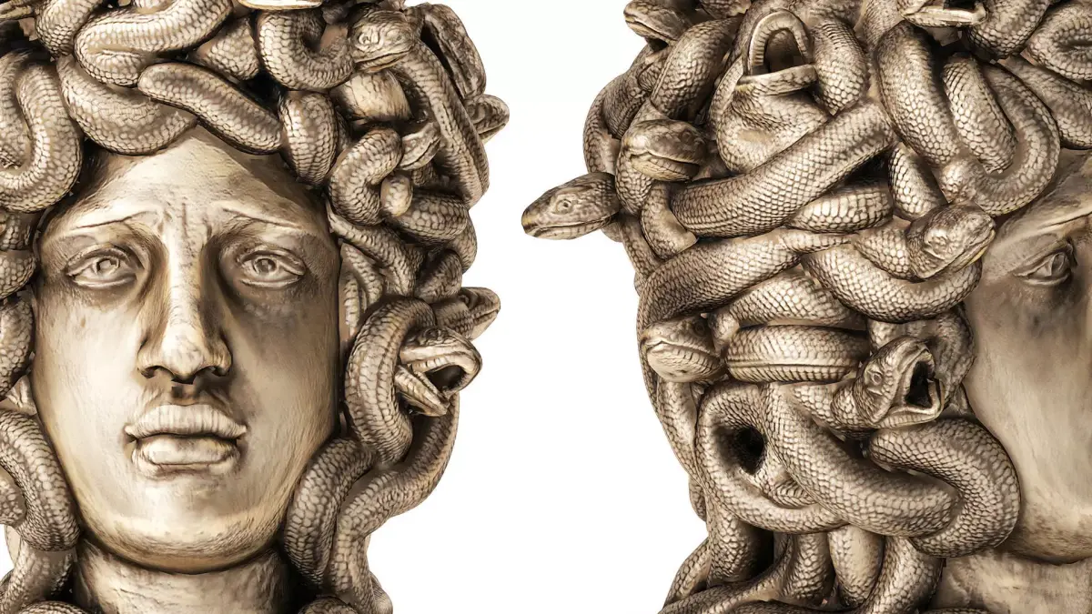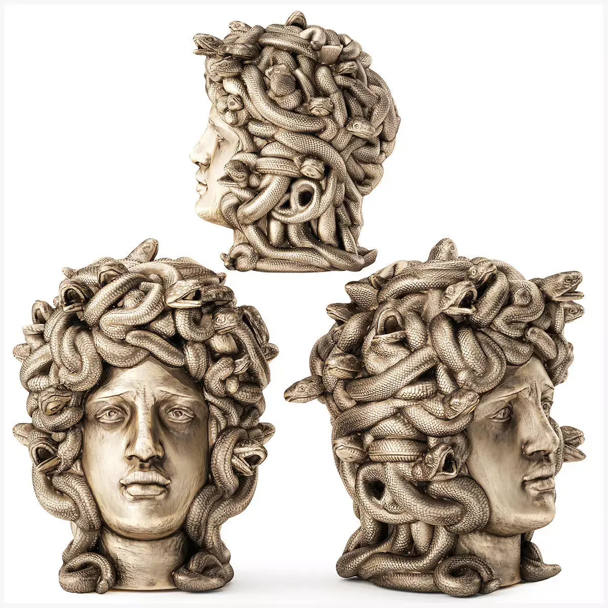 figurine, Gorgon Medusa, Medusa, Gorgon Medusa, snakes, bust, head, Gorgon, statue, figurine, table decor, decorative figurine, monochrome, solid color, realistic, modern, snake, snakes, heads, metal decor, monster, hero, fairy tale, myth, gods, god, antique, statue, decorative decor, new, top, kare design, kare